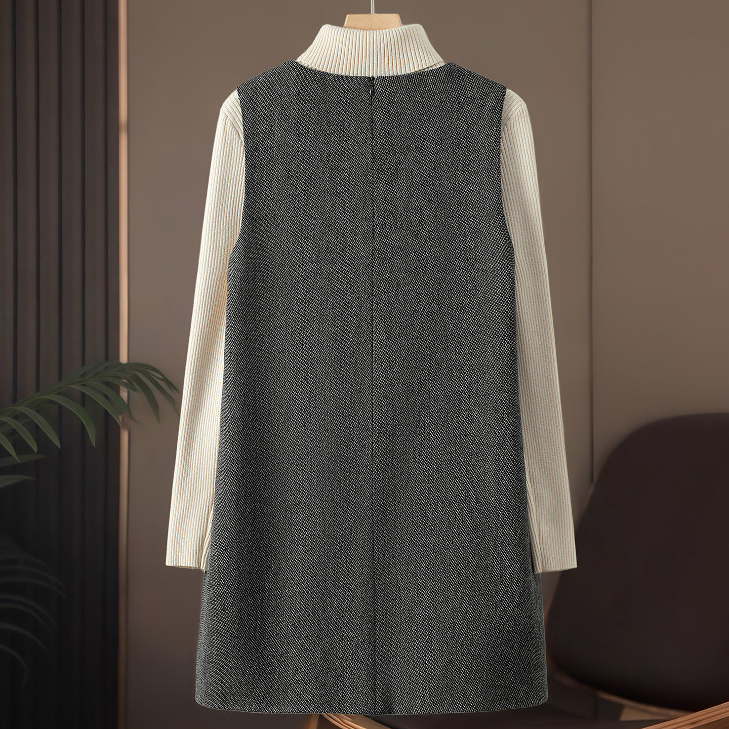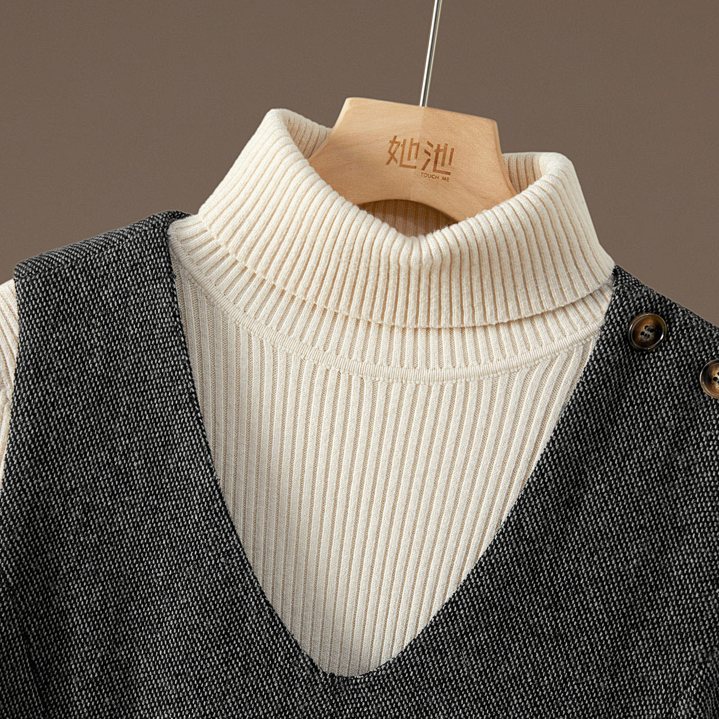 她池V领连衣裙2025秋装新款女装复古简约修身短款A字叠穿背心裙
