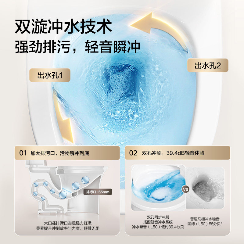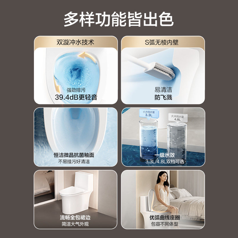 双漩劲冲 无棱内壁 抗菌釉面 一级水效节水