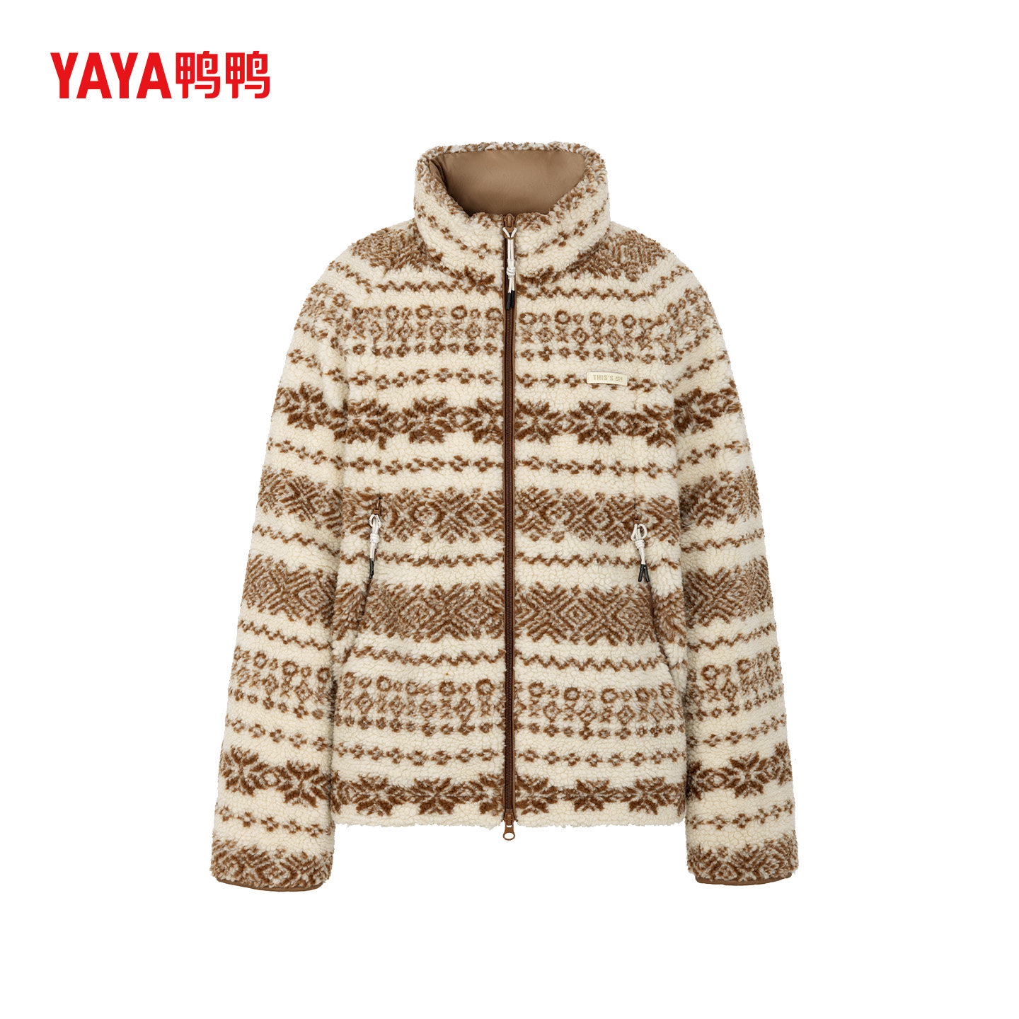 鸭鸭【费尔岛元素】YAYA鸭鸭2025冬情侣款摇粒绒一手长休闲羽绒服
