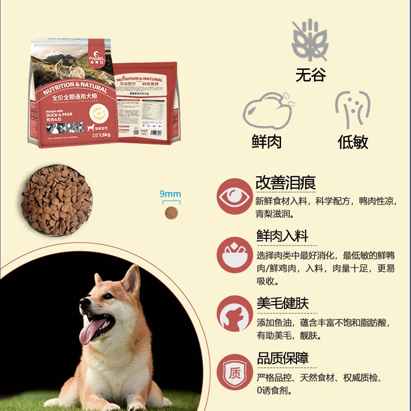 帕美拉天然无谷鸭肉梨犬粮试用装低敏鲜肉营养狗粮全价配方