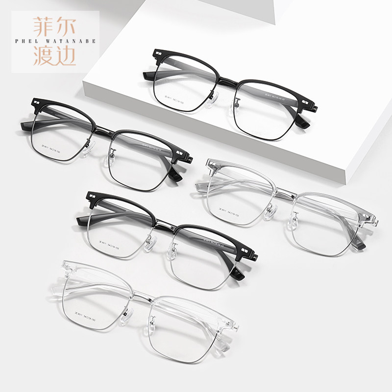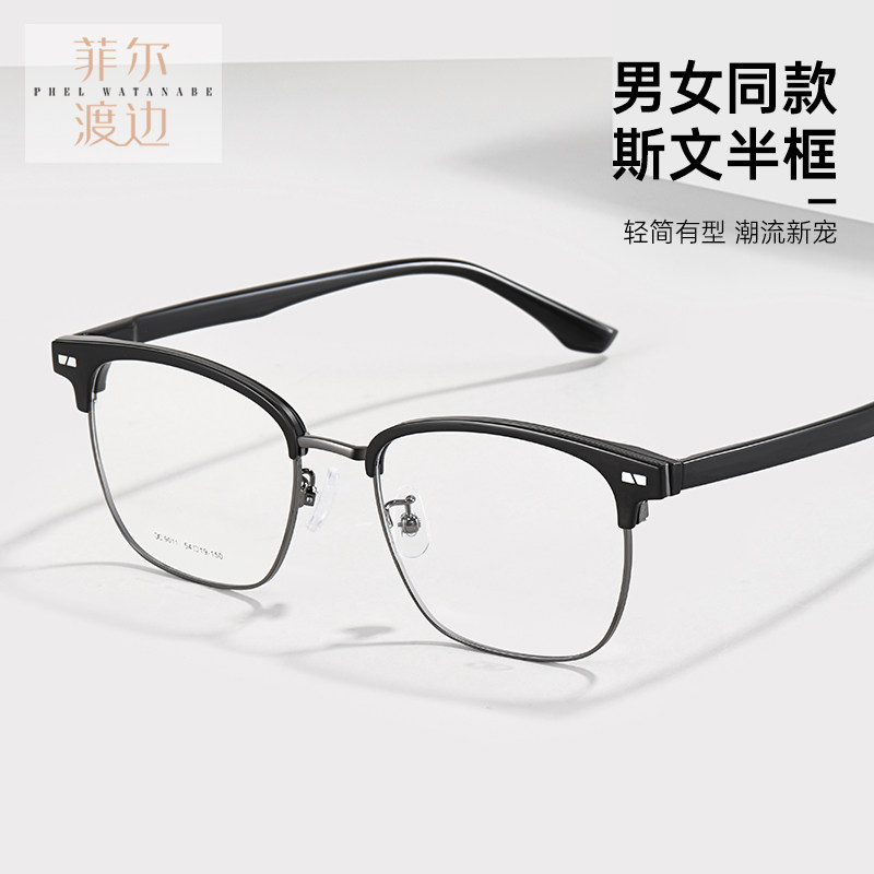 眉线框近视眼镜男大脸文艺防蓝光眉毛架半框痞帅专业配镜框C9011