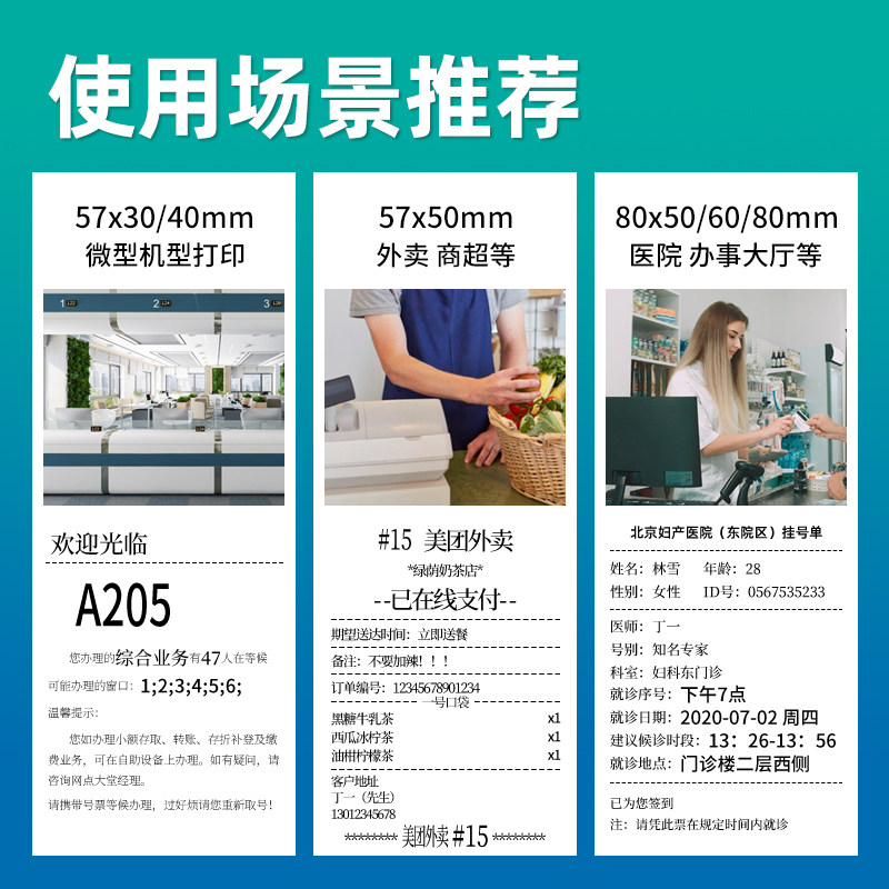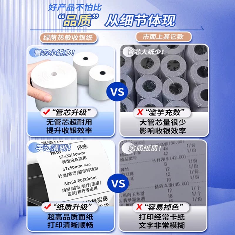收银纸小票纸白色热敏纸电影票超市打印纸机打价格奶茶外卖收银纸小票美团饿了么收银57*50 80*80多规格
