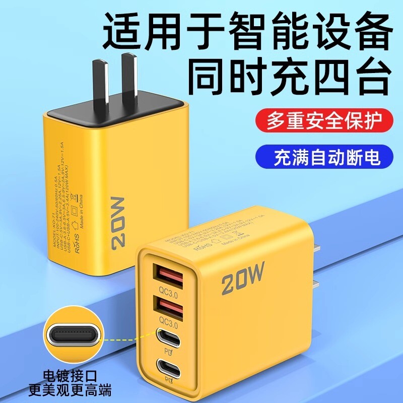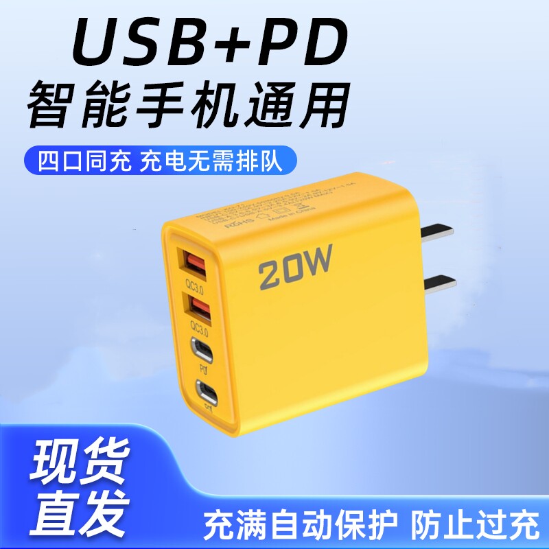20W智能手机多口USB充电器PD充电头通用Type-c插头适用安卓苹果华为小米手表OPPO VIVO散热器双口多功能