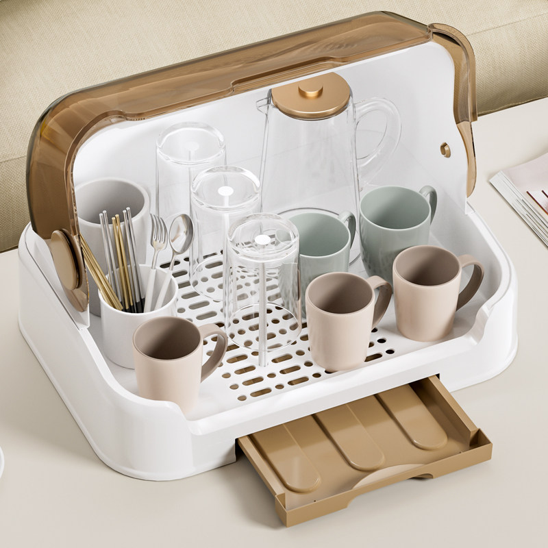 桌面杯子收纳置物架水杯收纳盒防尘玻璃杯茶杯托盘沥水杯架子杯架