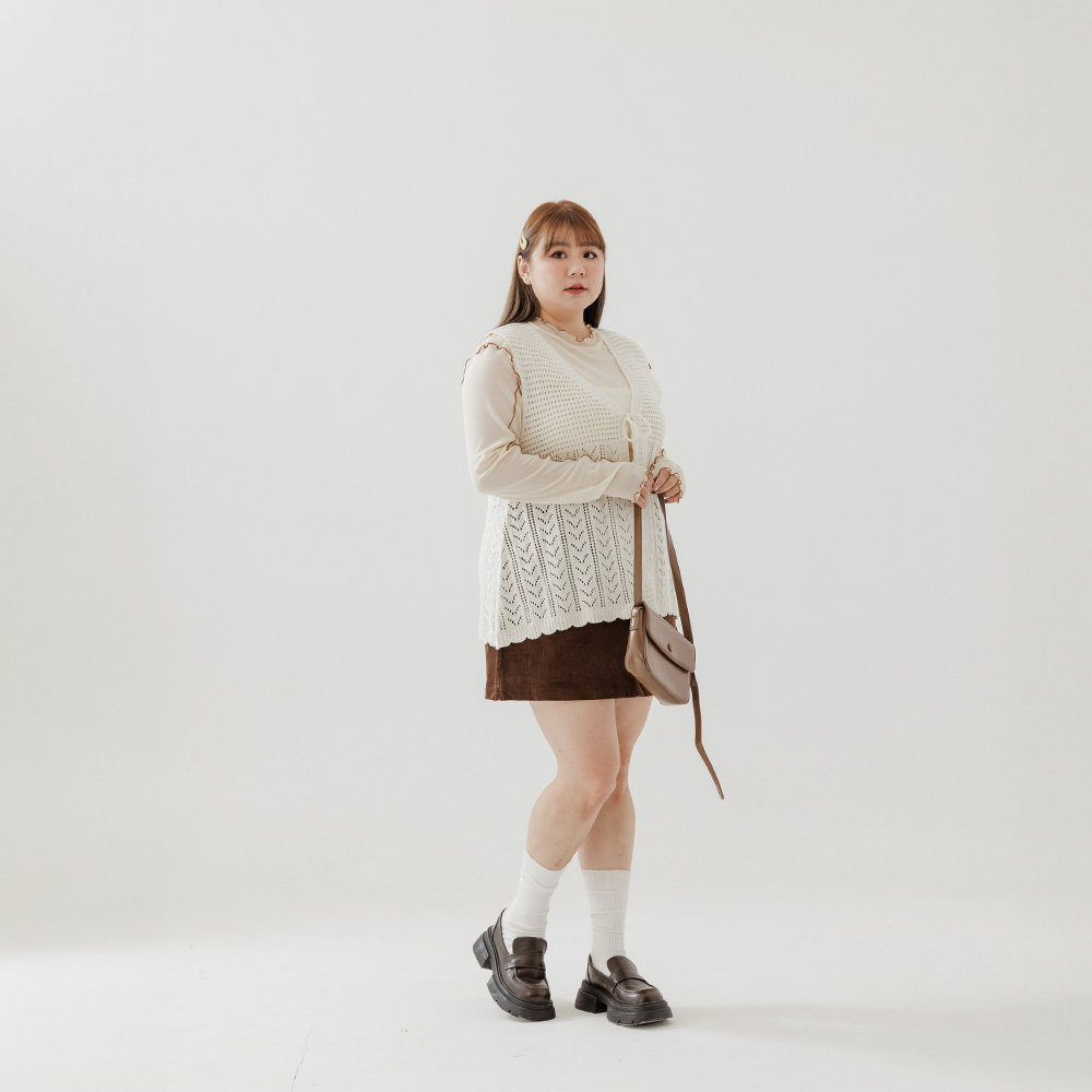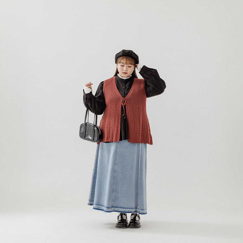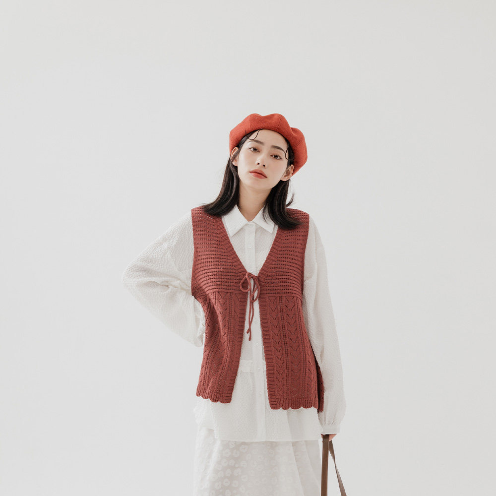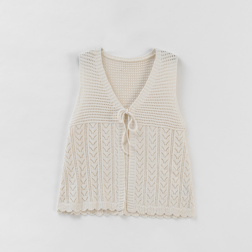 QUEENSHOP 2025秋冬新品女装棉花糖镂空花边针织绑带背心01099300