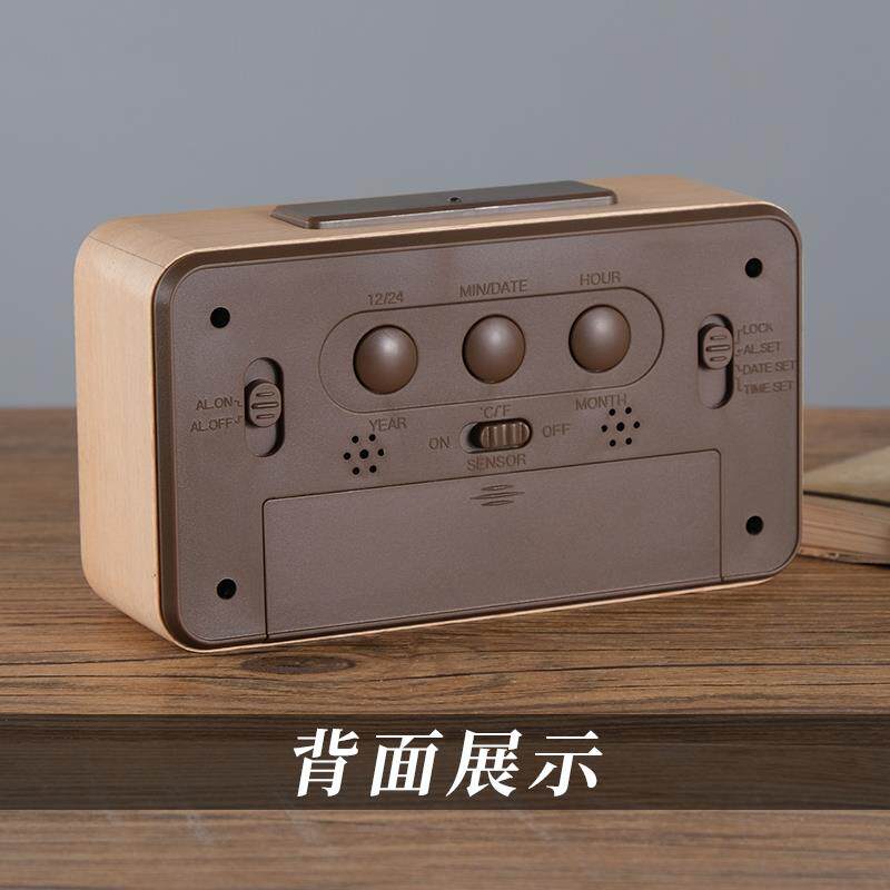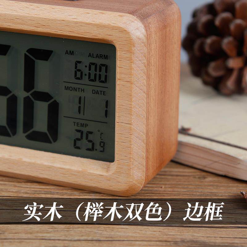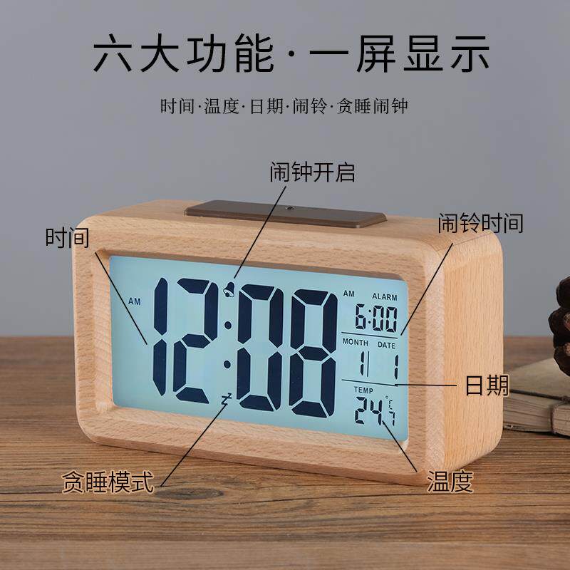 SI6KTQJ实木夜灯贪睡闹钟床头座钟学生用静音桌面钟时尚台面时钟