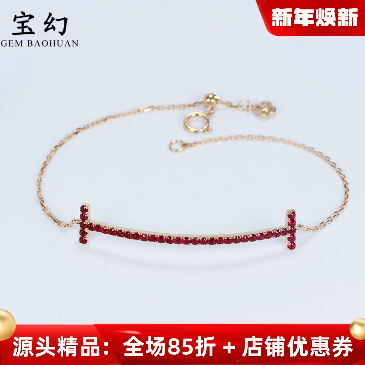 18K玫瑰金天然鸽血红宝石T字手链 黄金爪镶精致可调节女款可定制