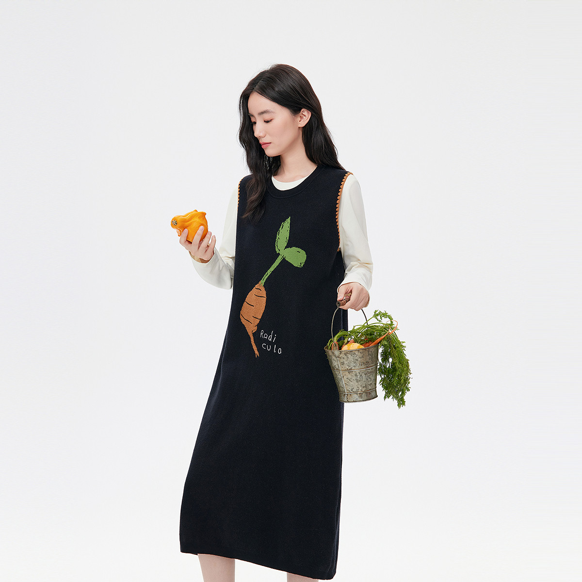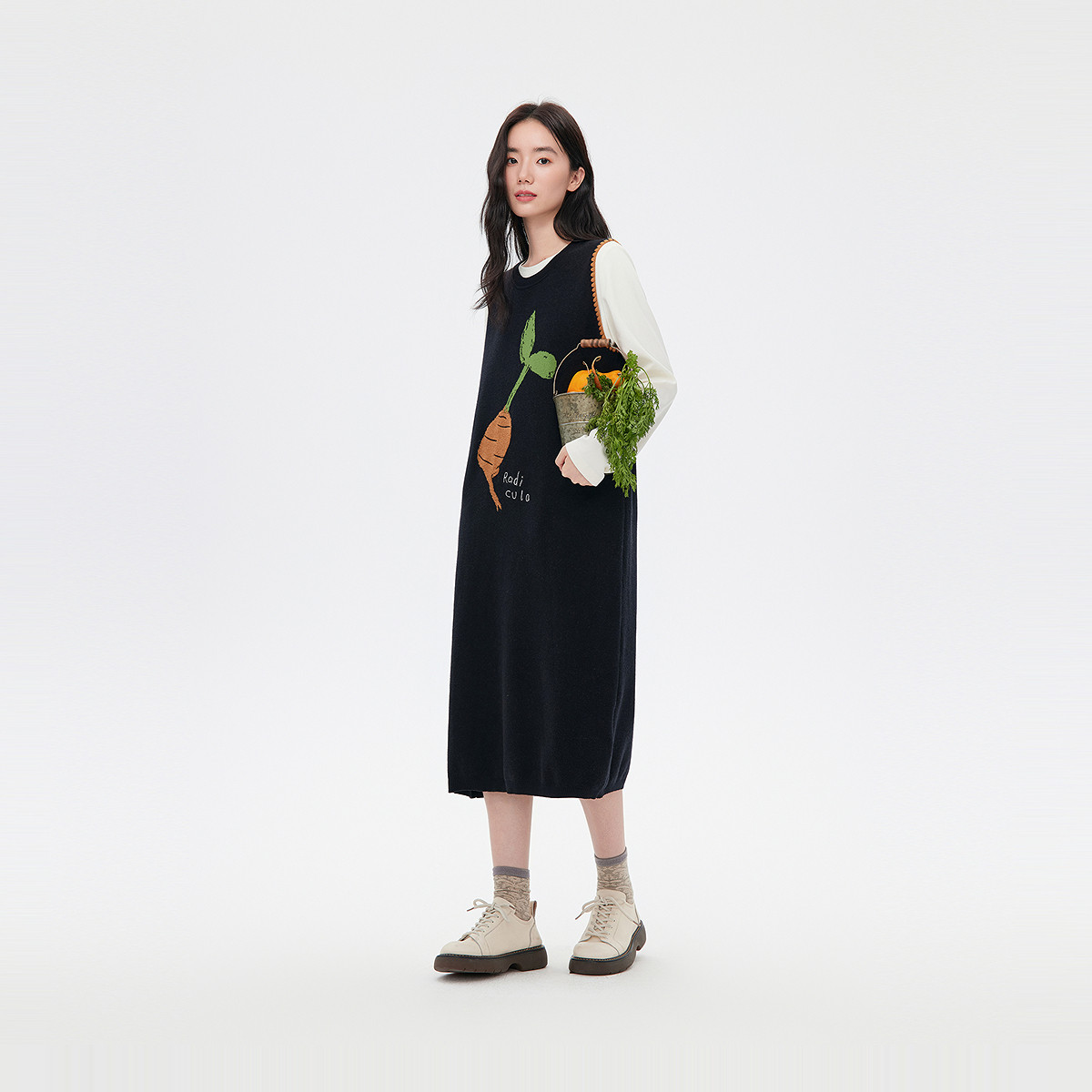 飞鸟和新酒中长款提花无袖连衣裙女2025秋季新款气质宽松背心女裙