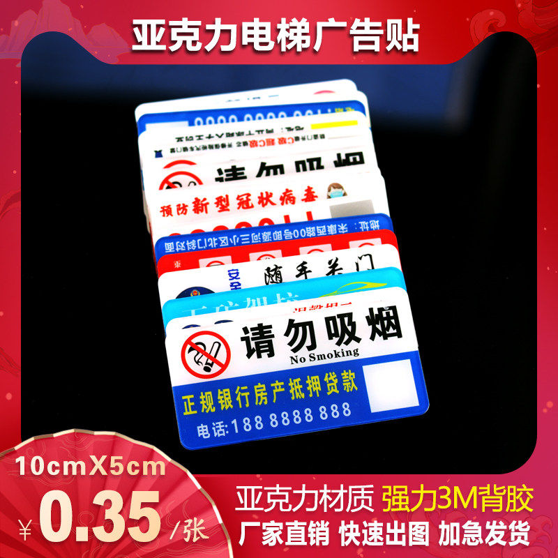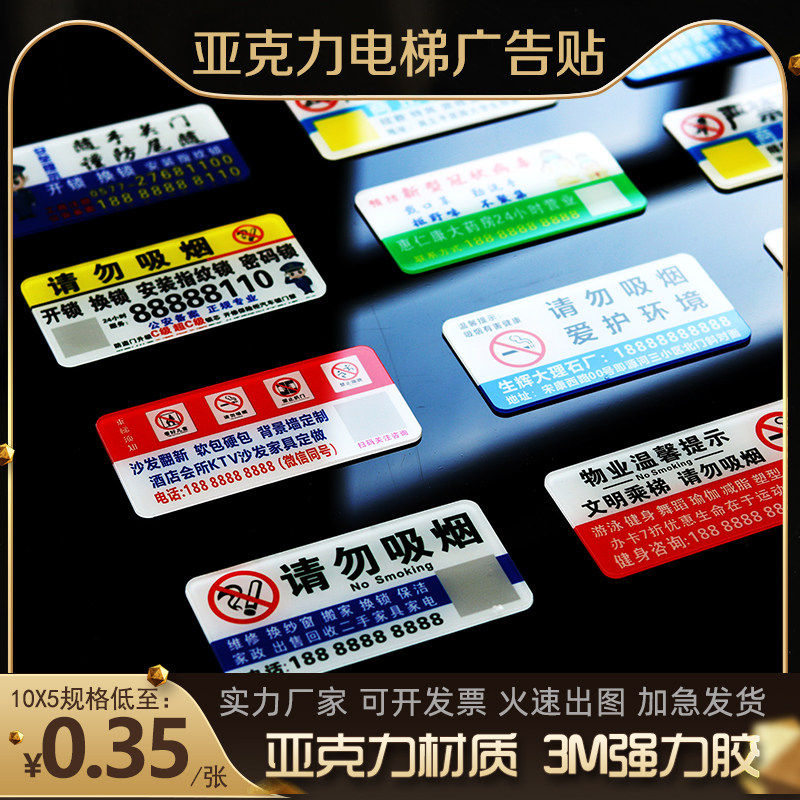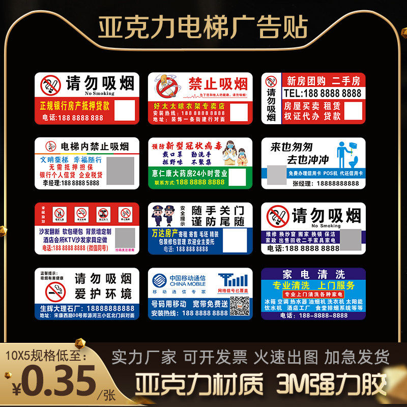 定制亚克力电梯广告贴牌移动电信贷款开锁禁止吸烟强力3M胶塑料贴厕所宽带移动联通房产中介贷款开锁小广告贴