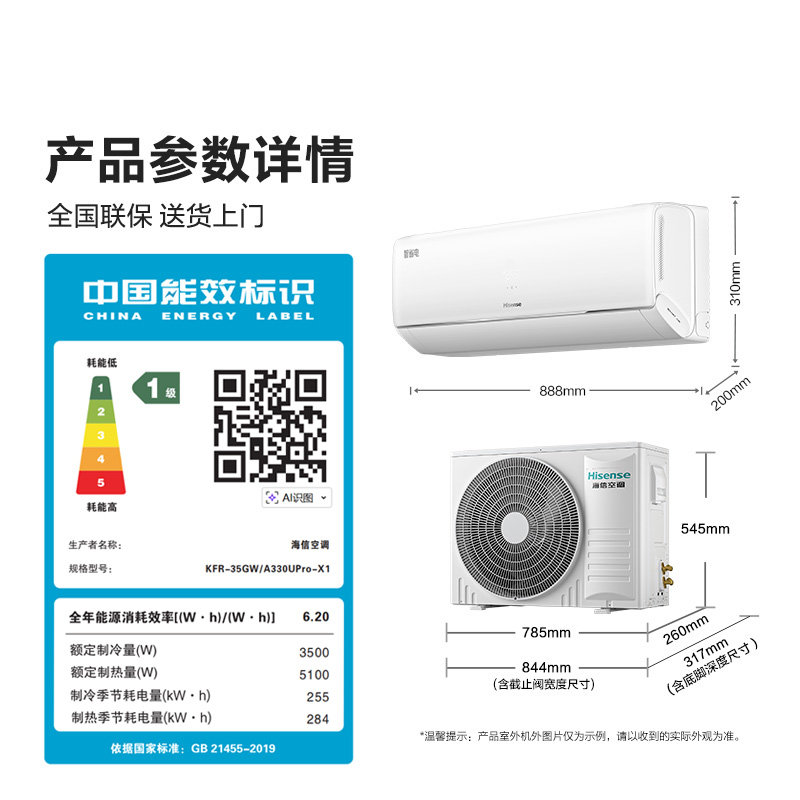 海信大1.5匹智省电空调挂机防直吹新一级变频卧室冷暖家用旗舰店