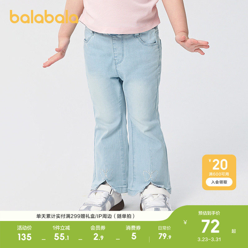 巴拉巴拉童装儿童长裤女童牛仔裤开叉喇叭裤夏季裤子凉感时髦百搭