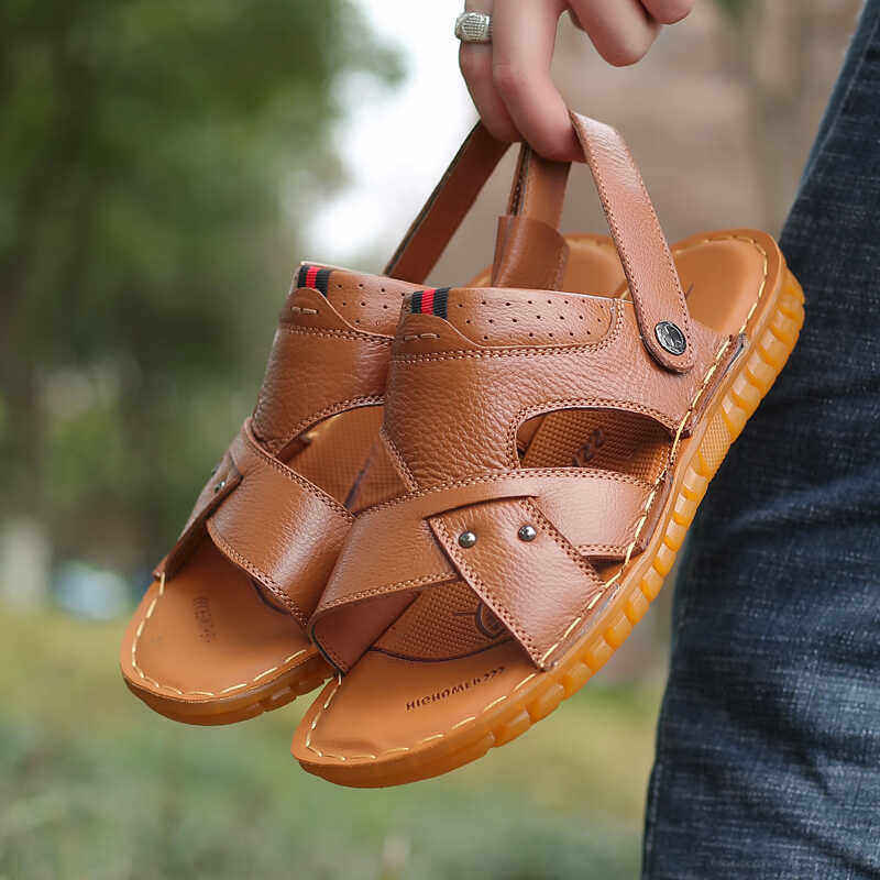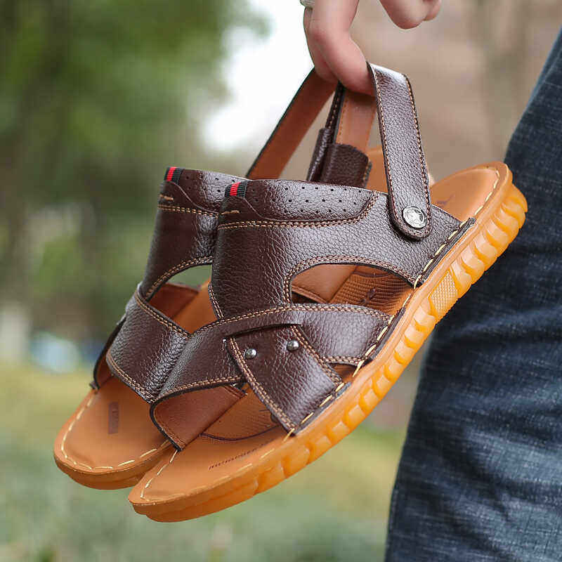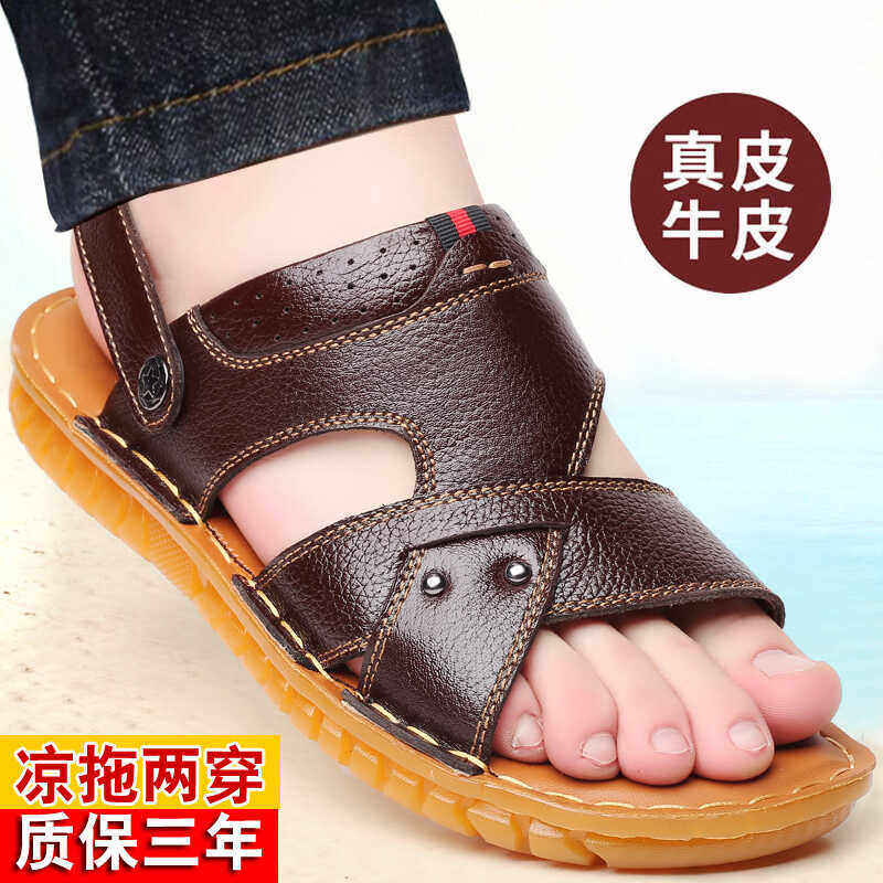 啄木鸟沙滩鞋男士头层牛皮牛筋底凉鞋真皮休闲防滑两用爸爸凉拖鞋
