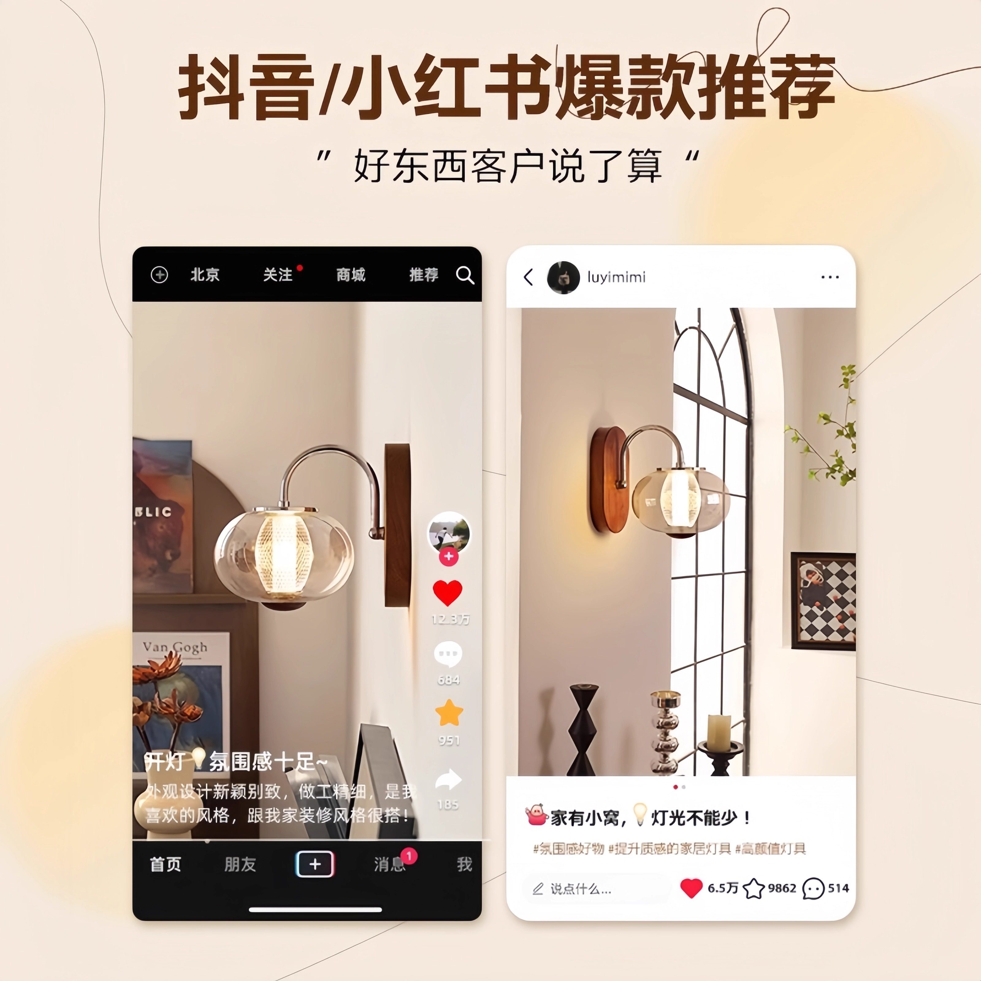 长虹新款中古风壁灯法式复古卧室床头灯护眼客厅背景墙楼梯过道灯