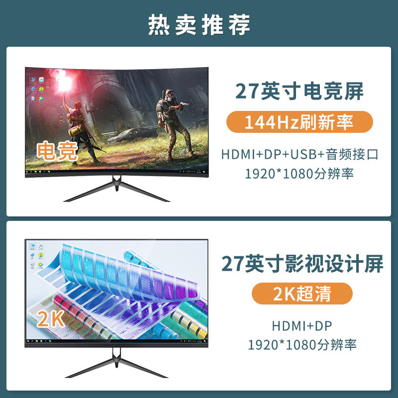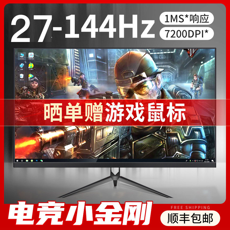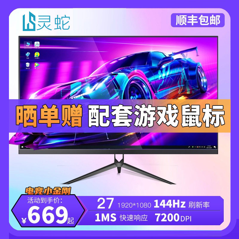 灵蛇27英寸曲面2K144Hz显示器 电竞台式电脑液晶屏幕高清超薄游戏