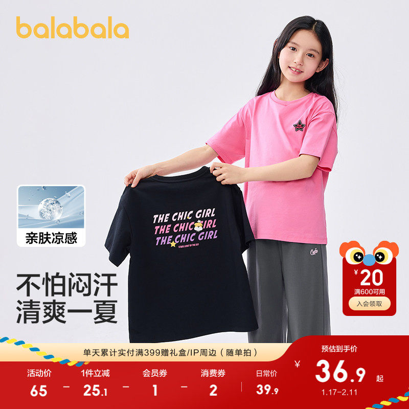 巴拉巴拉童装儿童短袖t恤女童2025新款夏装大童速干甜美印花上衣