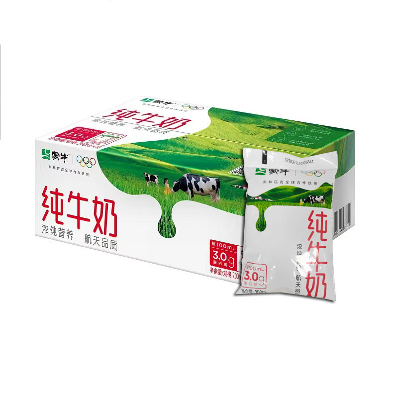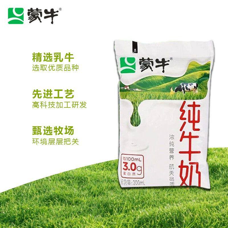 3.14号产蒙牛纯牛奶200ml*16袋百利包整箱早餐牛奶100%生牛乳常温