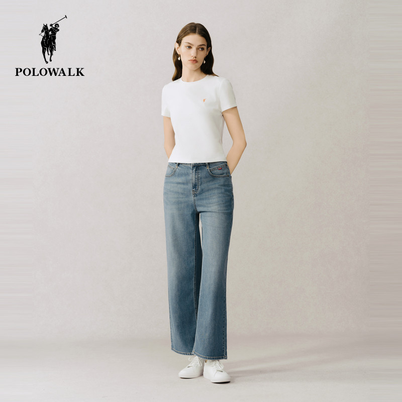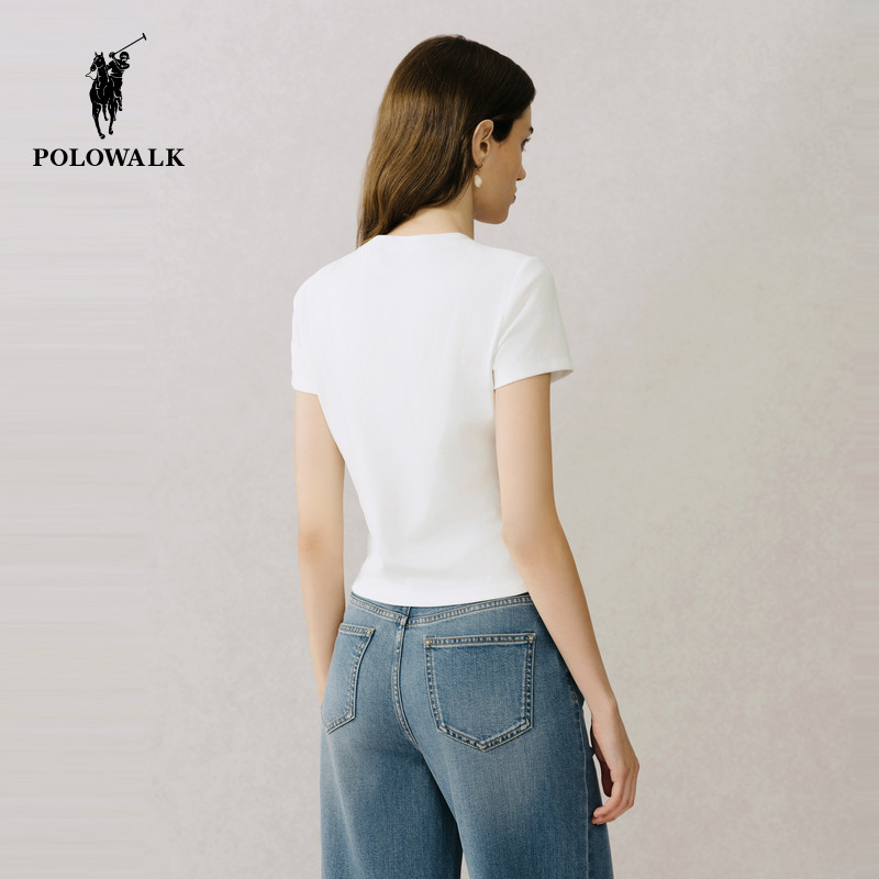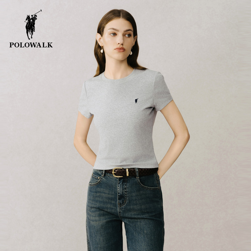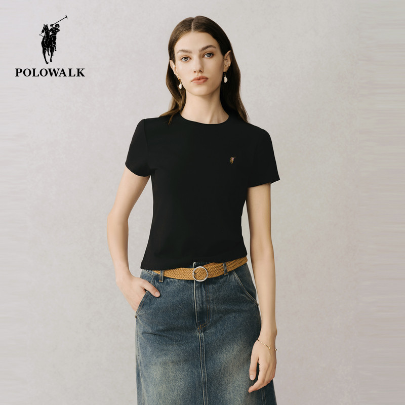 POLOWALK女士圆领短袖T恤2026春夏新款简约时尚打底纯色短袖t恤女