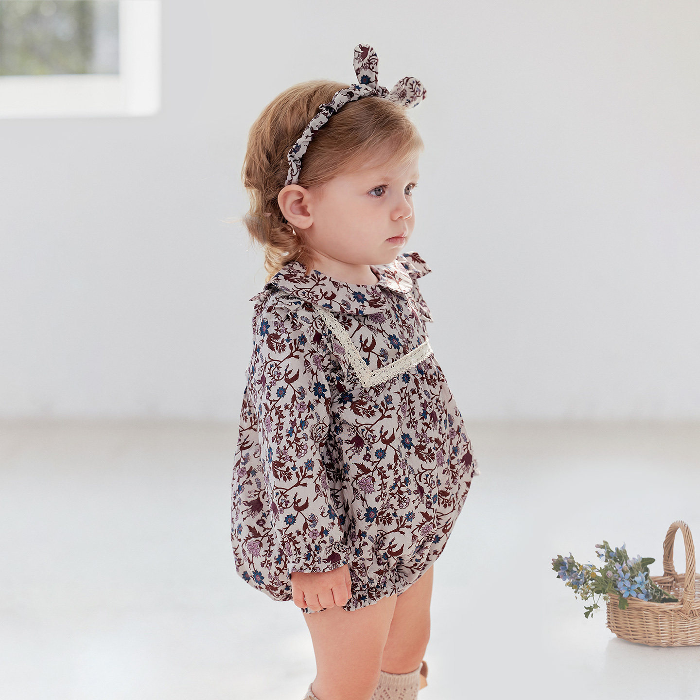 babylove女宝宝包屁衣婴幼儿春秋款纯棉三角哈衣外出爬服堇色花枝