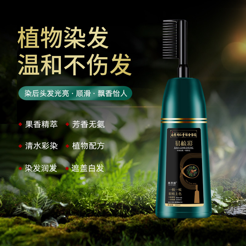 同仁堂孕妇女染发剂遮白发天然植物纯无刺激一梳黑发膏梳子遮盖