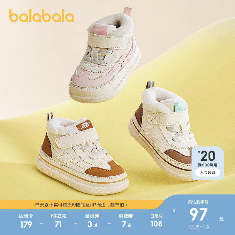 巴拉巴拉儿童学步鞋婴儿鞋子男宝女宝板鞋透气加绒厚秋冬童鞋潮流