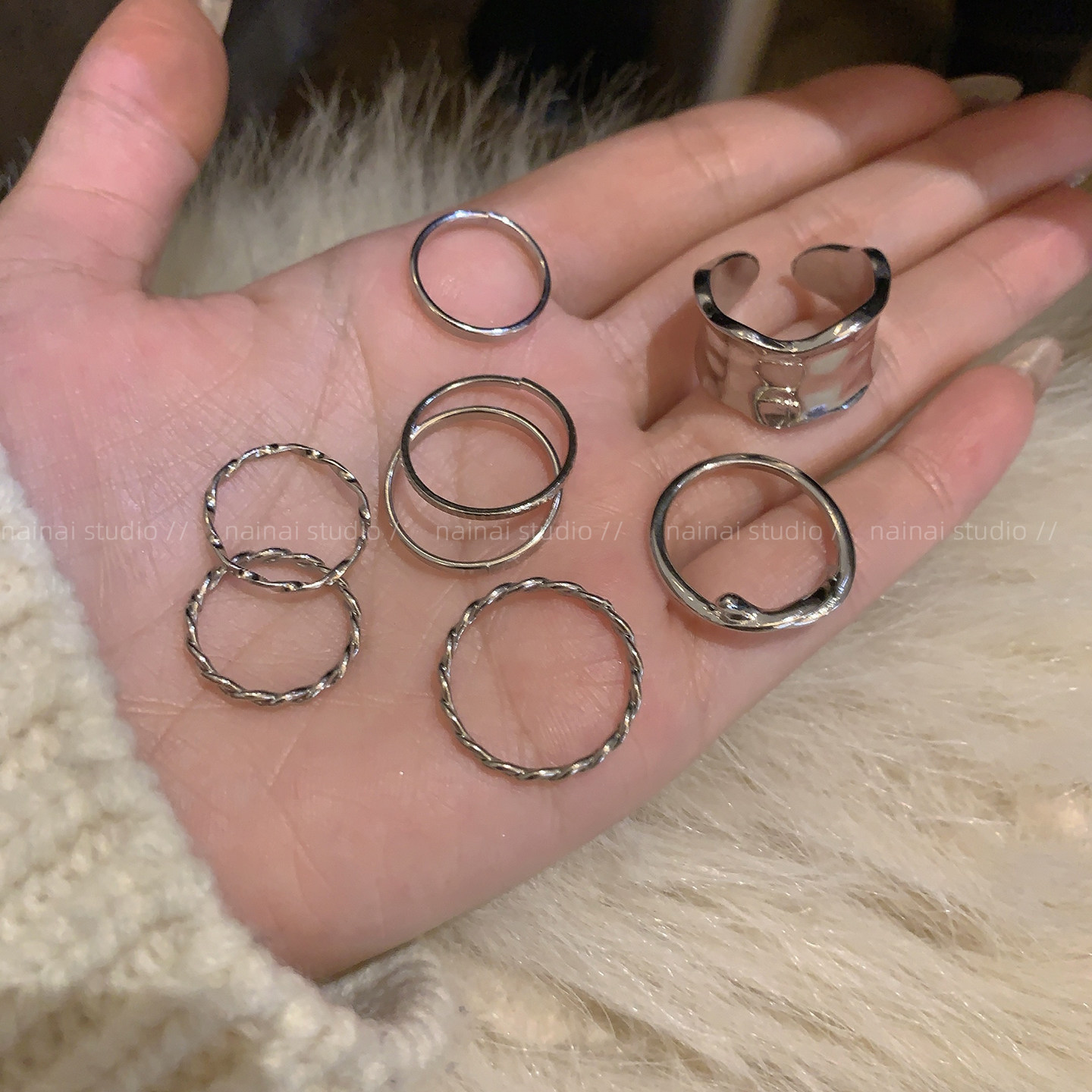 戒指8只装~冷淡风叠戴小众设计高级感指环2025新款素圈食指戒女A
