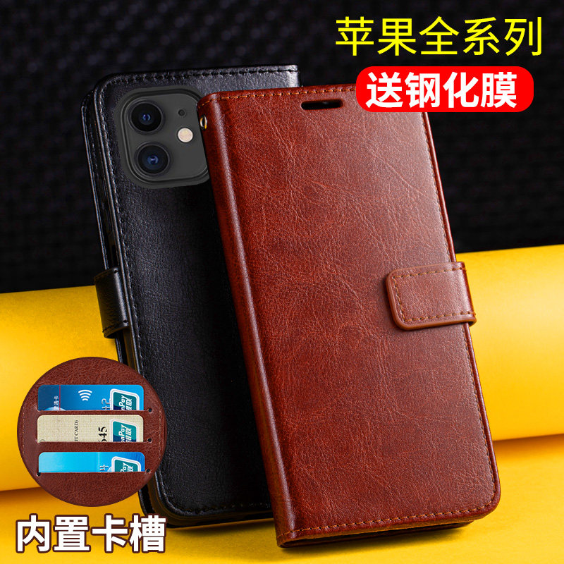 适用于iphone12手机壳苹果11翻盖式皮套mini平果7/8保护套XS带盖pro max外壳XR苹果6S plus插卡槽钱包皮夹por