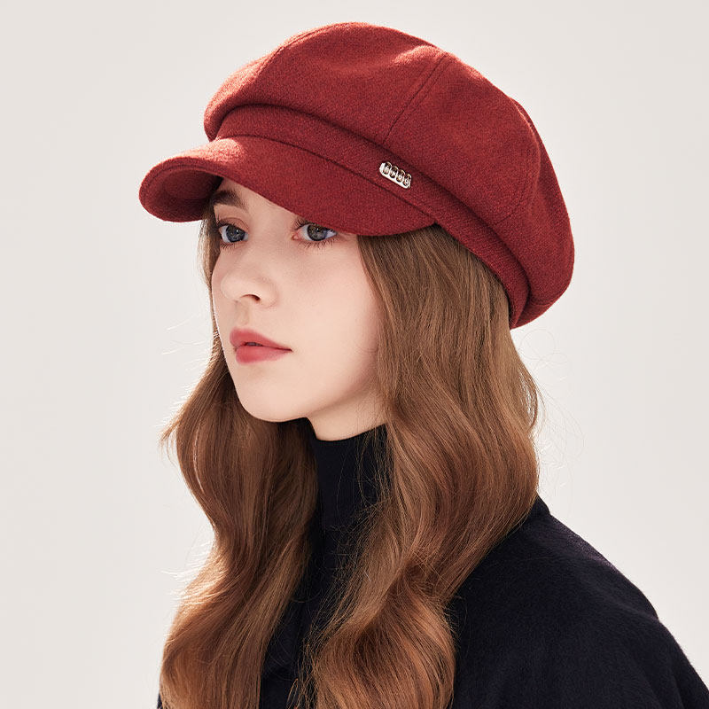 稻草人韩版复古红色鸭舌贝雷帽女百搭气质显脸小休闲八角云朵帽子