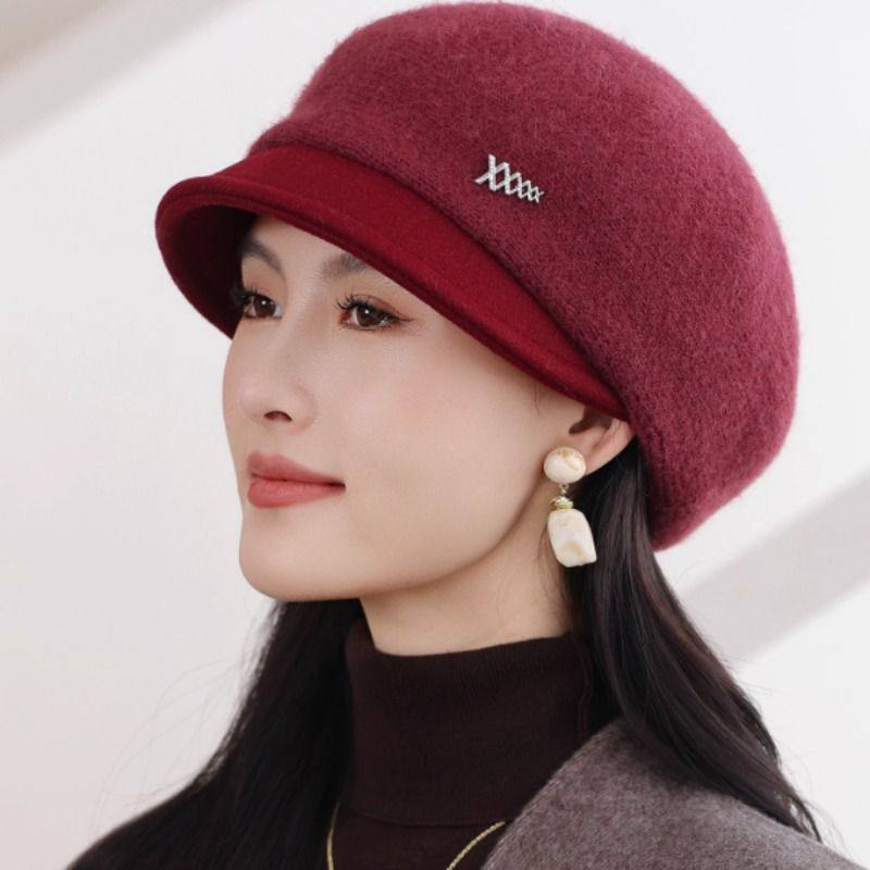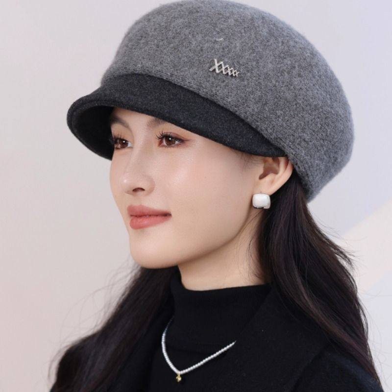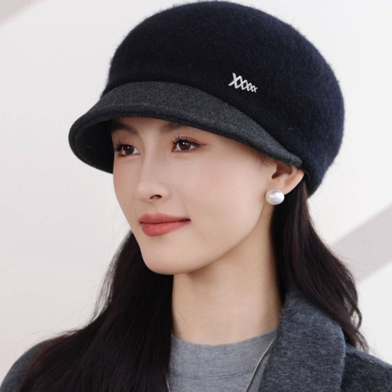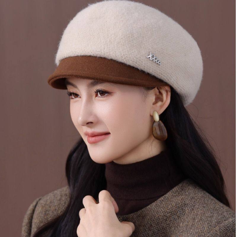 秋冬季保暖鸭舌帽贝雷帽毛线帽女款帽子新款加厚女帽妈妈时尚洋气