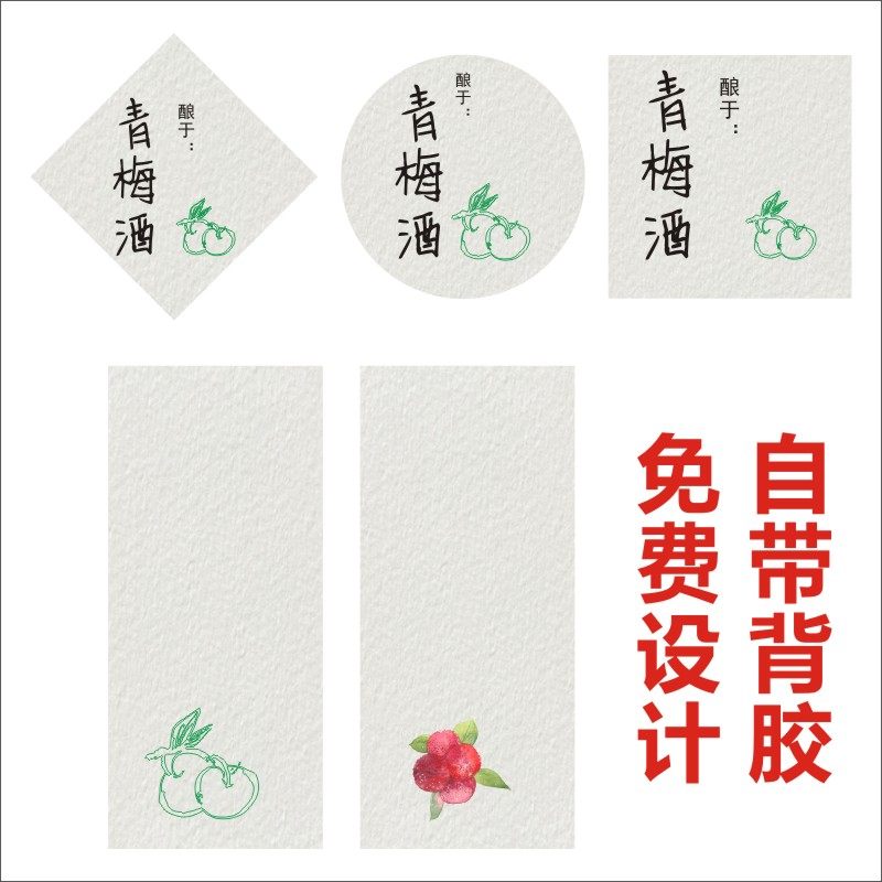 青梅酒标签贴纸不干胶通用玻璃瓶标签封口贴可手写果酒标签手作F