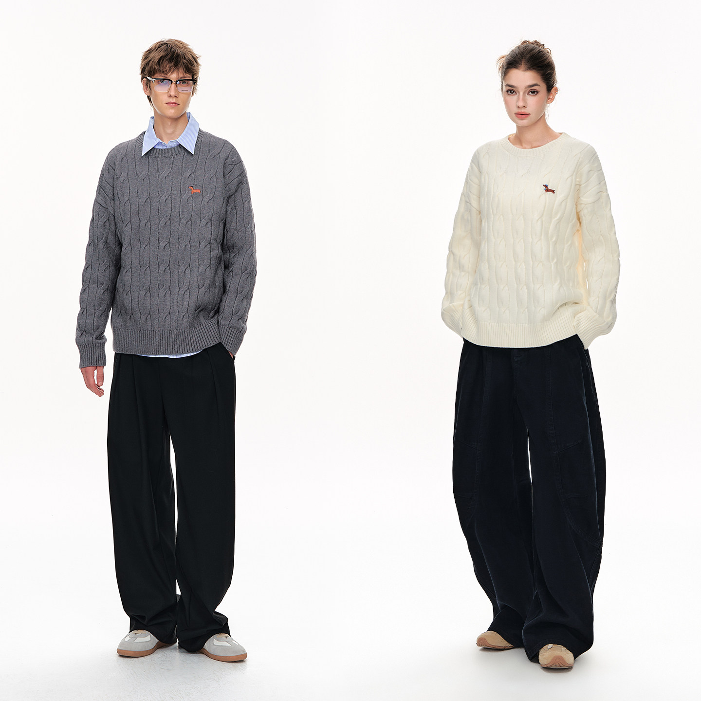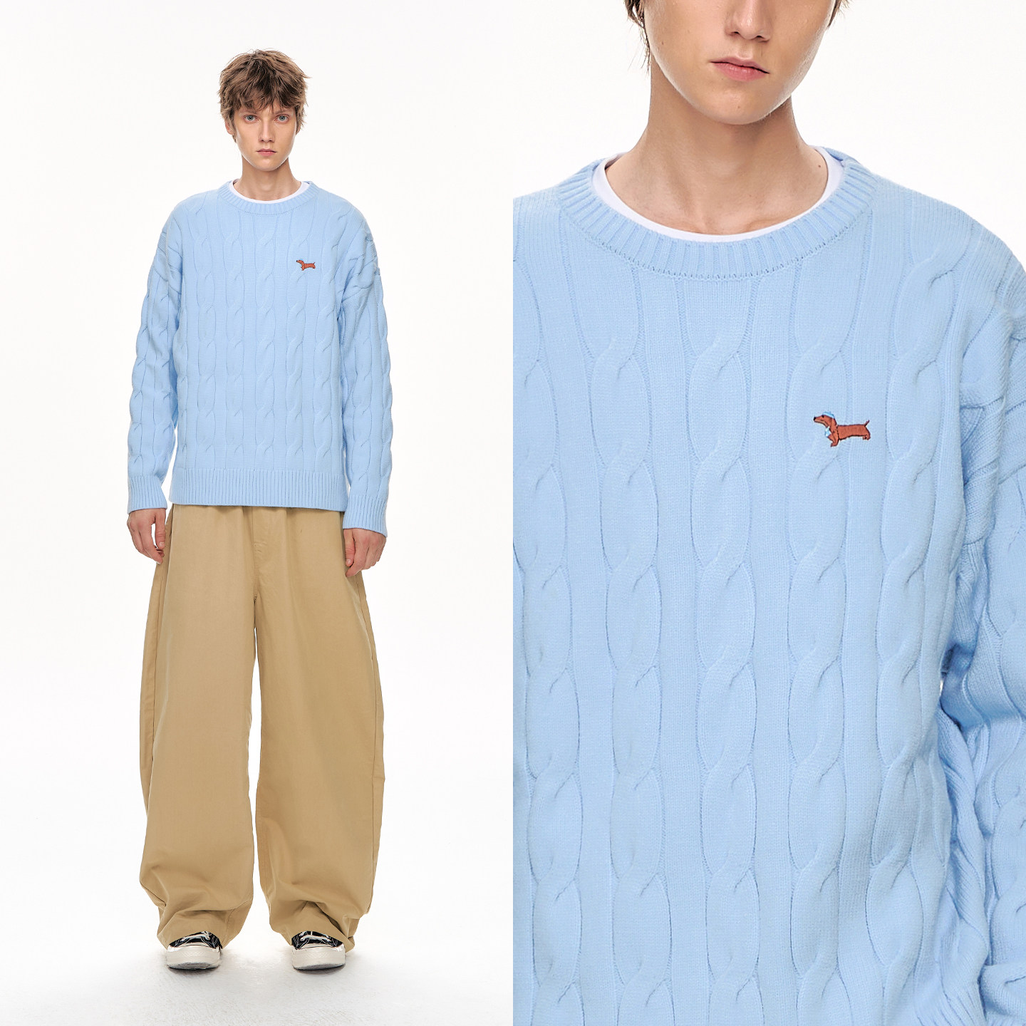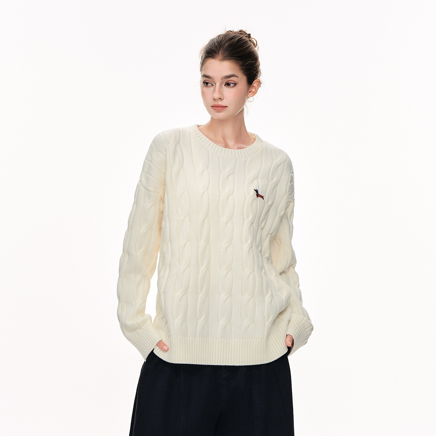 CLIMAX VISION安哥拉纤绒纱/小狗刺绣保暖圆领复古绞花毛衣针织衫