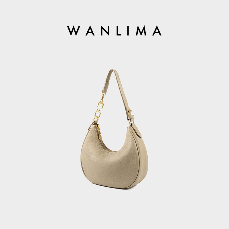 万里马半月腋下包女极简风单肩月牙包设计师款斜挎百搭通勤牛皮包