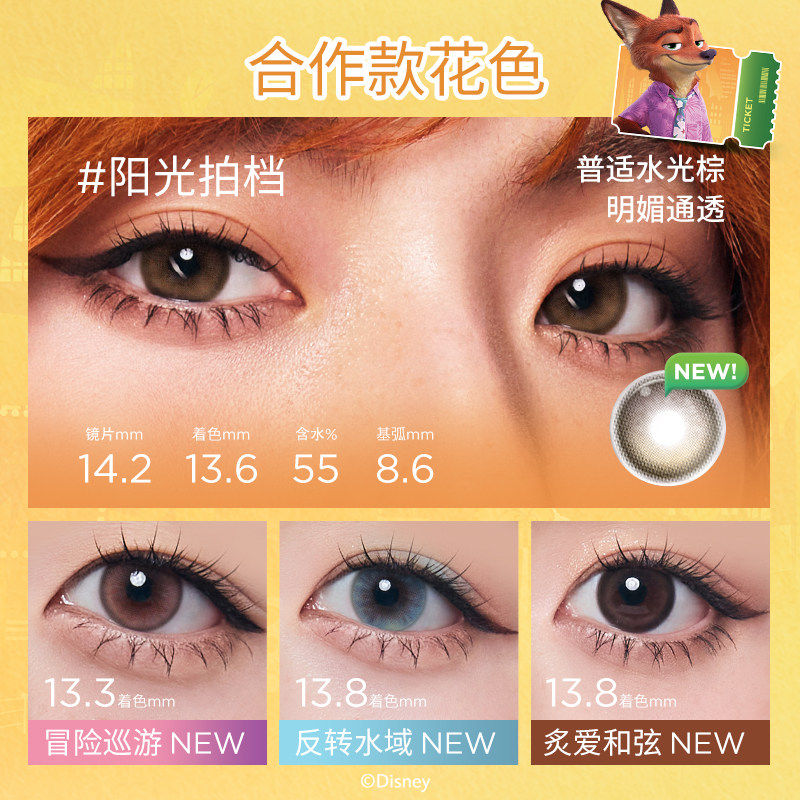 moody美瞳月抛疯狂动物城2合作冷泡乌龙茶彩色隐形眼镜2片
