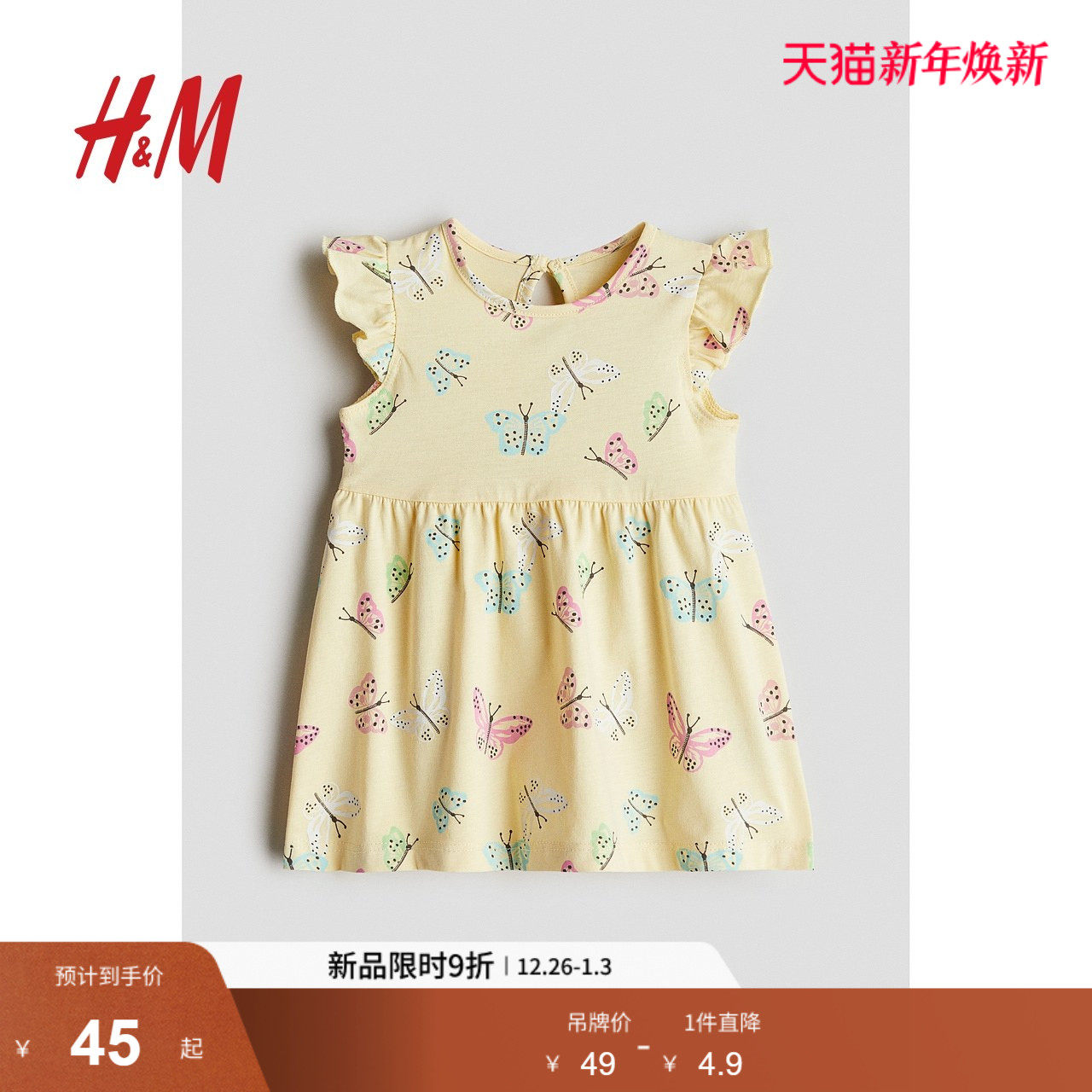 HM童装女婴连衣裙冬季时尚舒适印花圆领飞袖及膝公主裙1265912