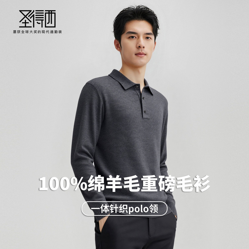 【100%绵羊毛】圣得西男士保暖polo羊毛衫2025冬季新款打底衫毛衣