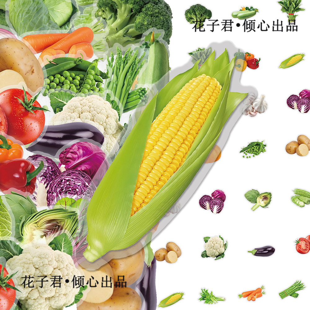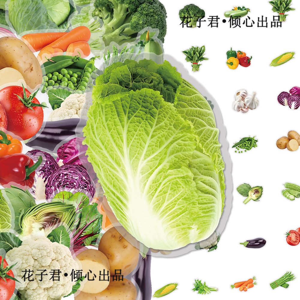 100张写实蔬菜PET贴纸ins风高清白菜萝卜南瓜装饰手账手机桌面diy