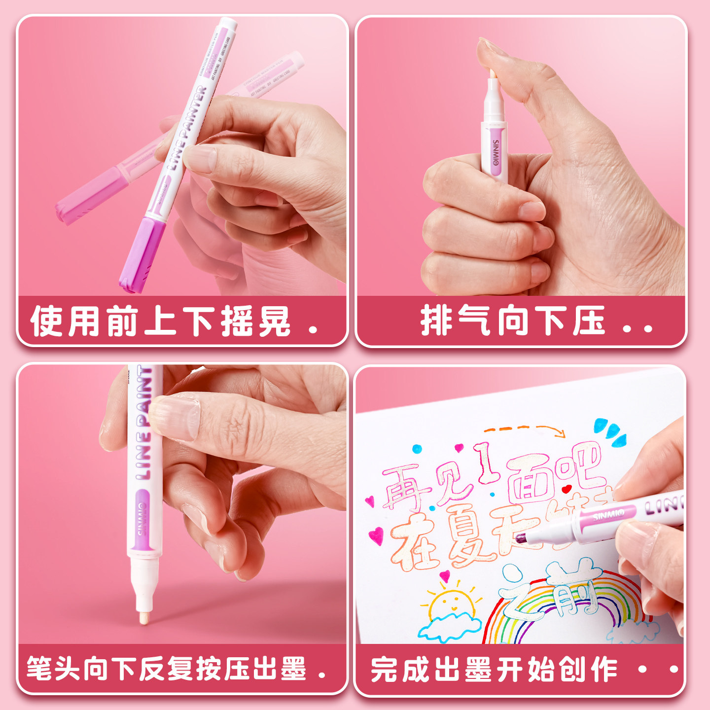 双线轮廓笔高颜值彩色记号笔速干顺滑不断墨荧光笔小学生DIY贺卡手抄报手账笔幼儿园儿童绘画涂鸦珠光啫喱笔