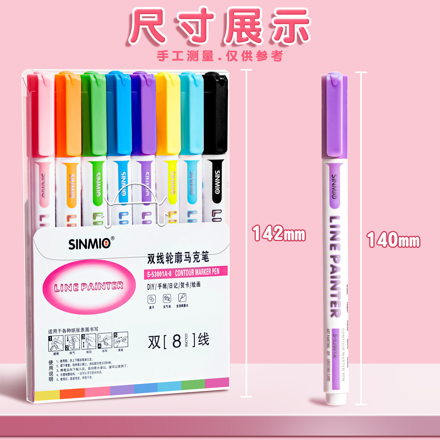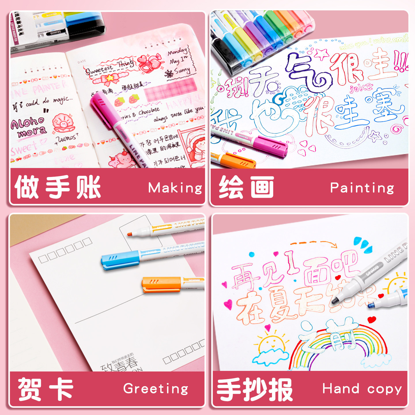 双线轮廓笔高颜值彩色记号笔速干顺滑荧光笔