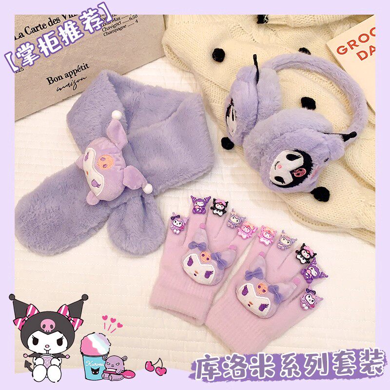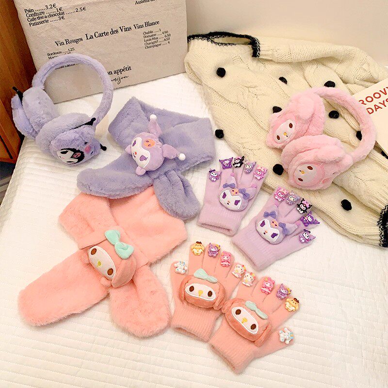 卡皮巴拉儿童手套围巾耳罩女童冬季保暖套装小孩防寒美甲手套耳包