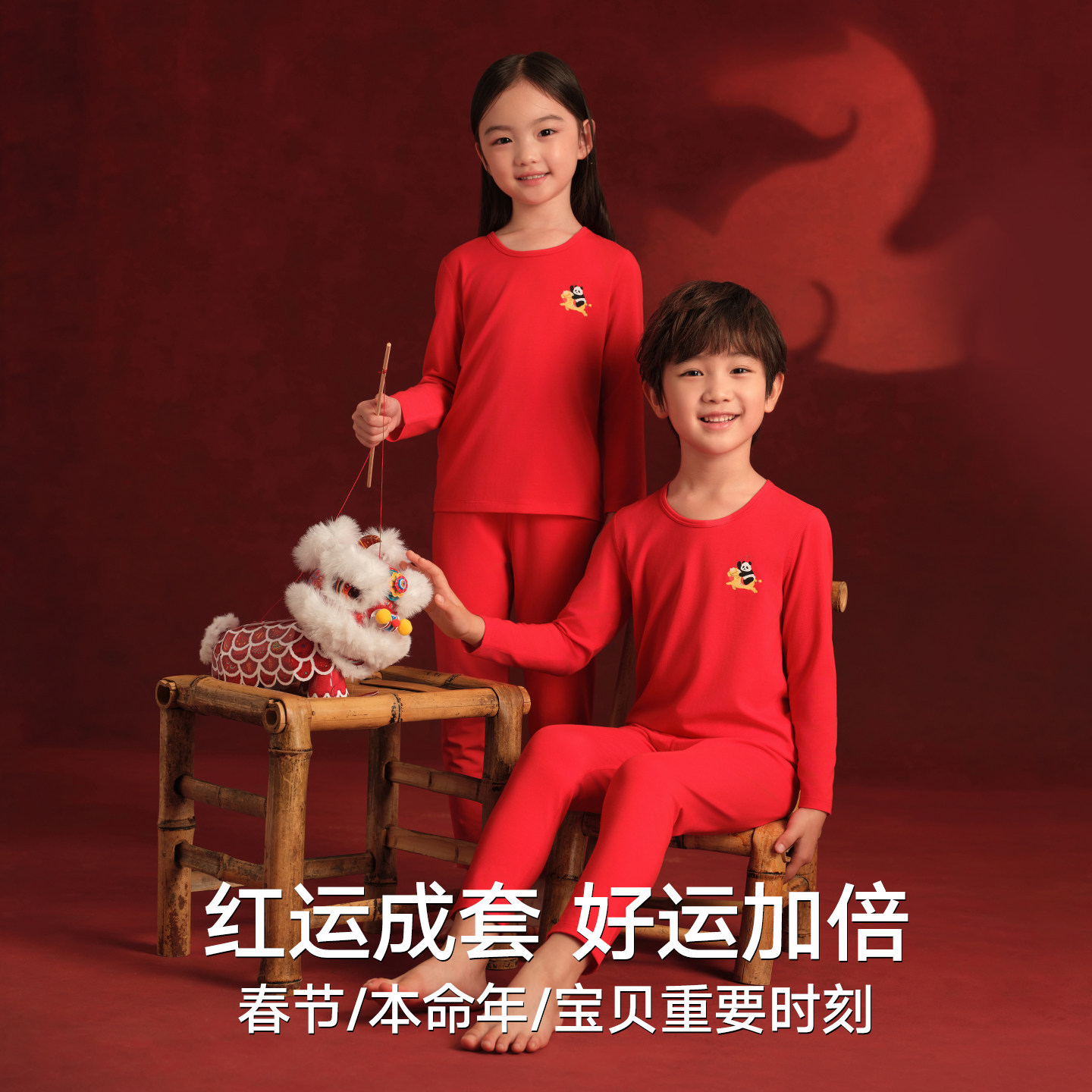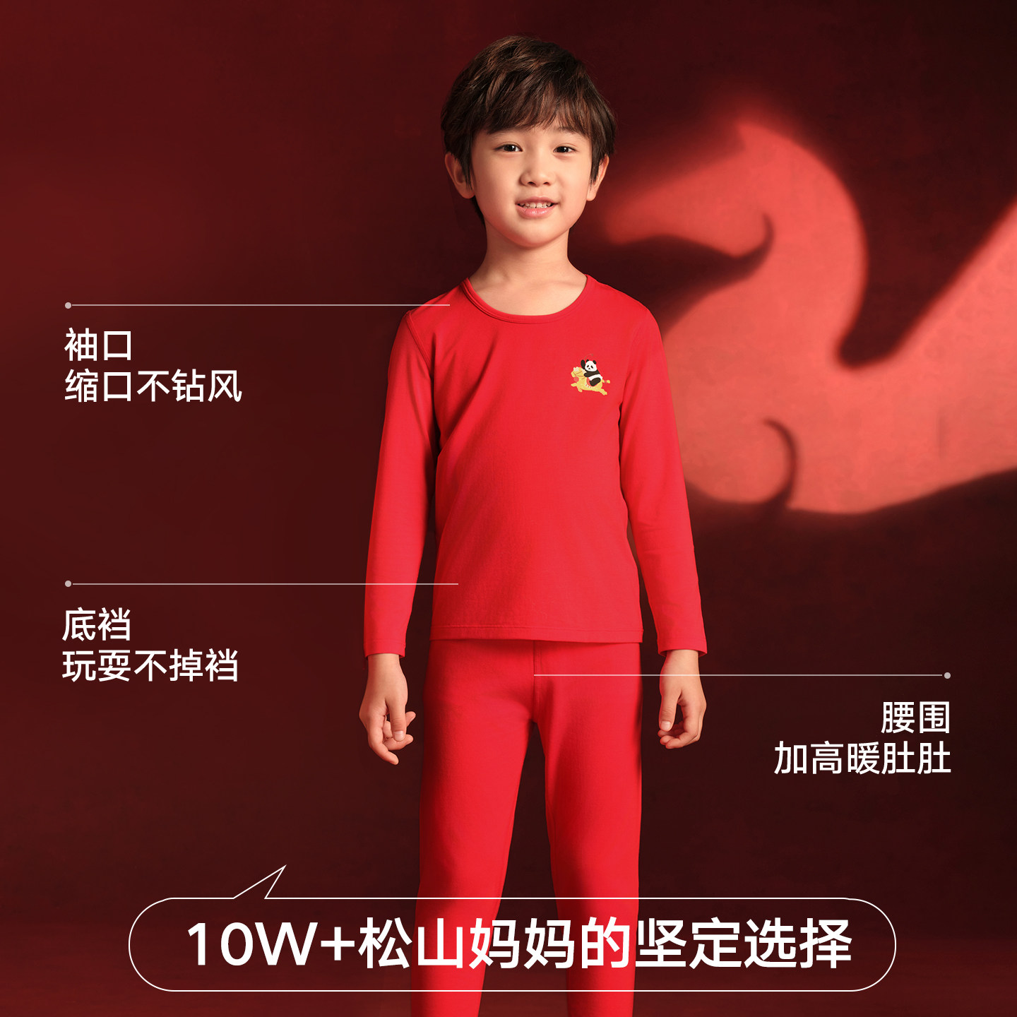 松山棉店儿童大红色保暖内衣套装本命年棉莫打底男童女童秋衣秋裤
