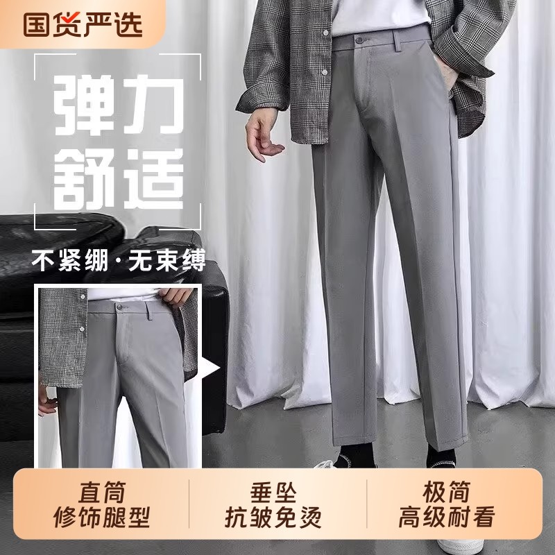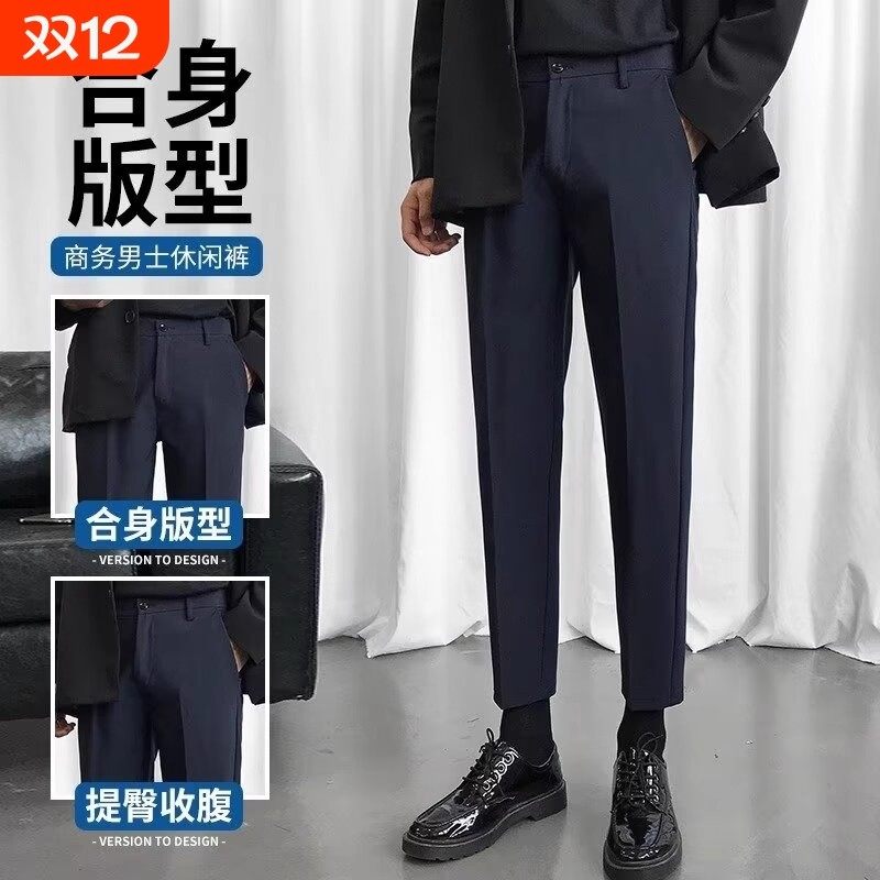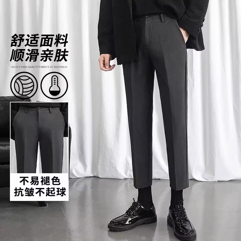 秋冬商务小脚男士西装休闲裤轻奢时尚垂感直筒裤韩版修身男装纯色
