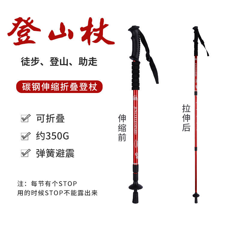 登山杖户外超轻伸缩杖男女爬山徒步装备防滑多功能老人拐杖