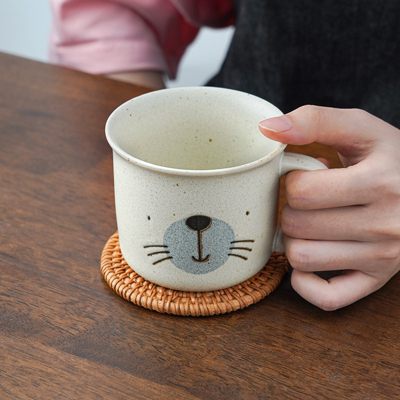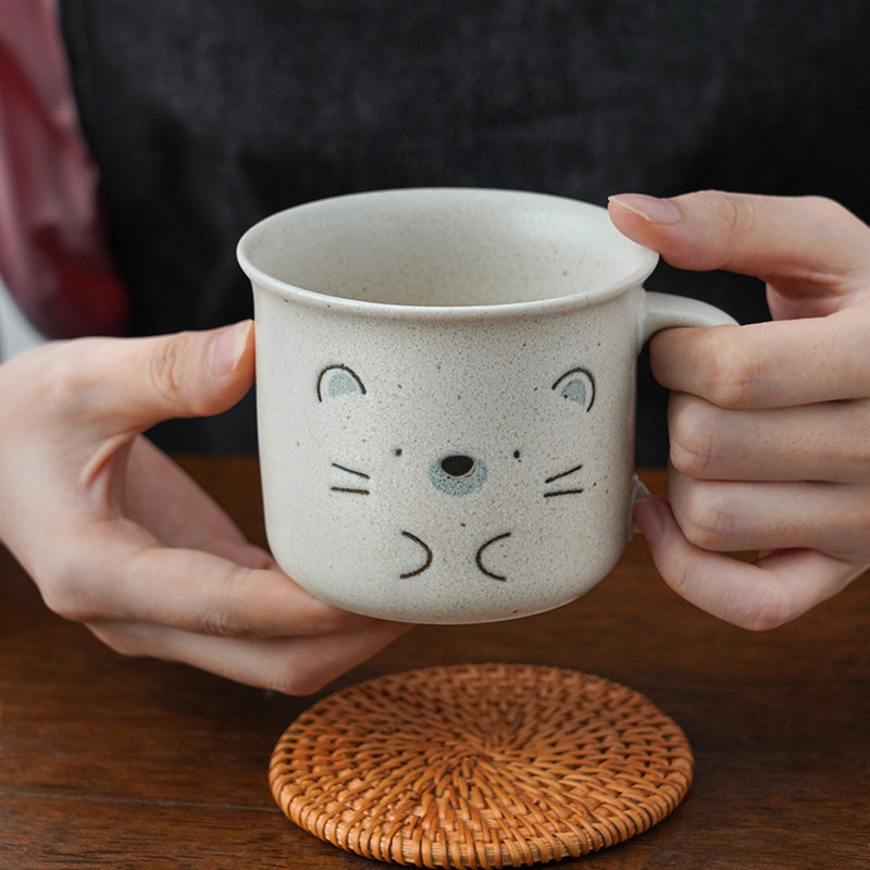 简约团团猫咪杯情侣早餐杯马克杯女生可爱卡通大容量杯陶瓷咖啡杯