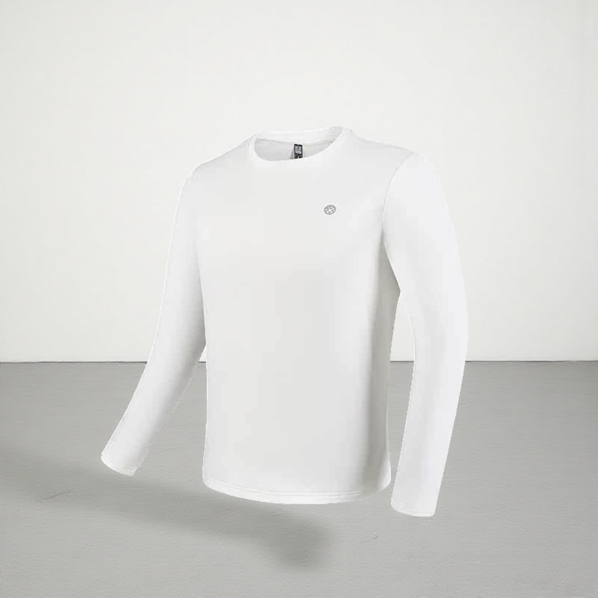 必迈男士加绒保暖衣舒适运动蓄能暖绒长袖白色内搭T恤外穿慢跑衣