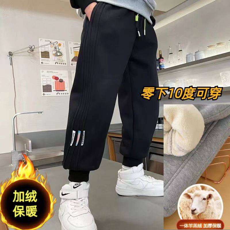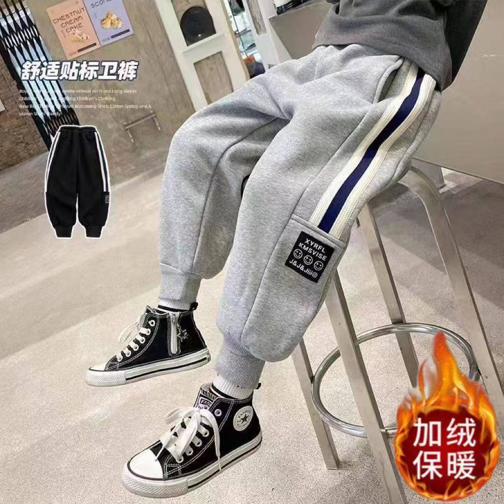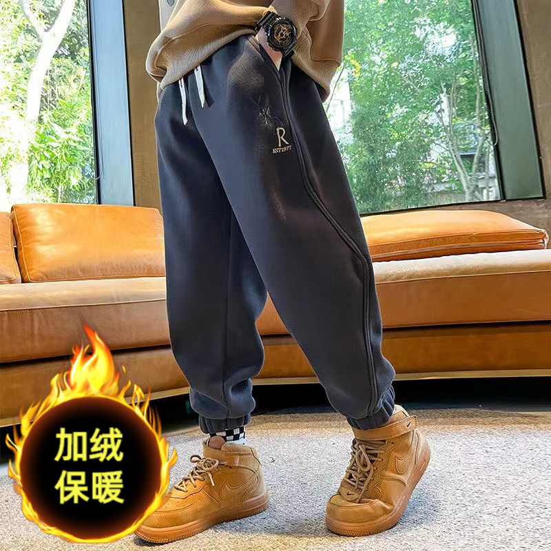 男童秋冬加绒裤子休闲裤童装大童冬款男孩长裤卫裤儿童加厚运动裤