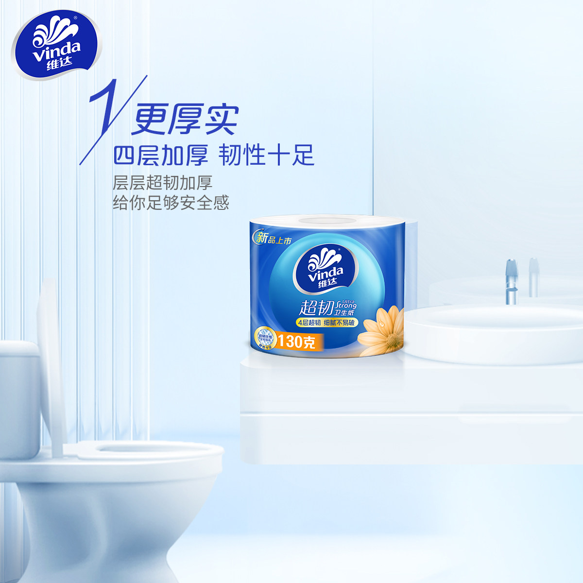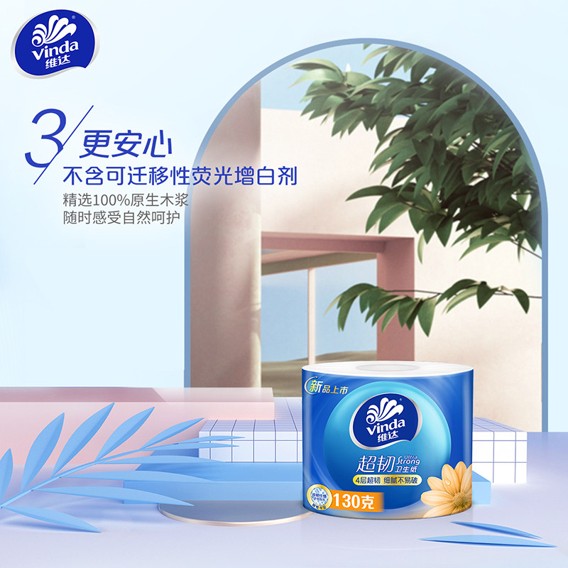 【孙颖莎推荐】维达卷纸蓝色经典卫生纸巾四层家庭装有芯卷纸厕所