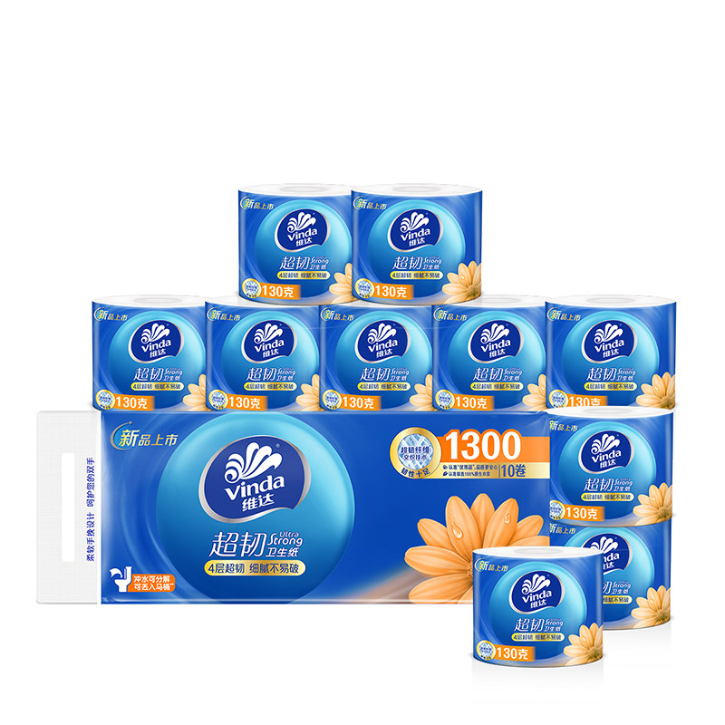 维达纸巾无芯卷纸超韧4层10卷家用卫生纸实芯卷筒纸厕纸手纸提装