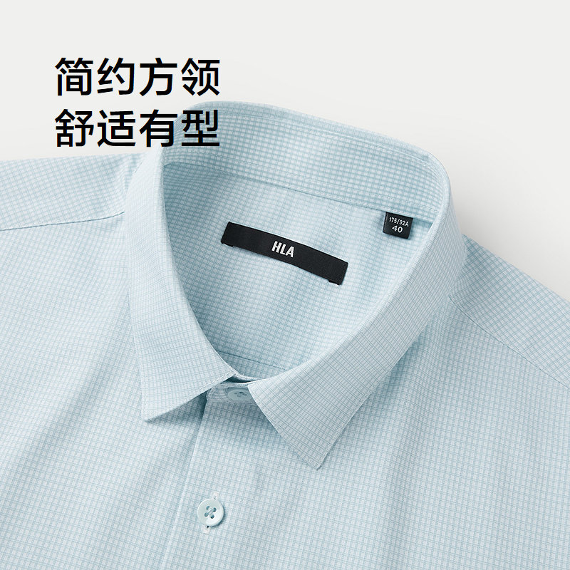 HLA/海澜之家格纹提花短袖休闲衬衫春夏含莫代尔凉感上衣男