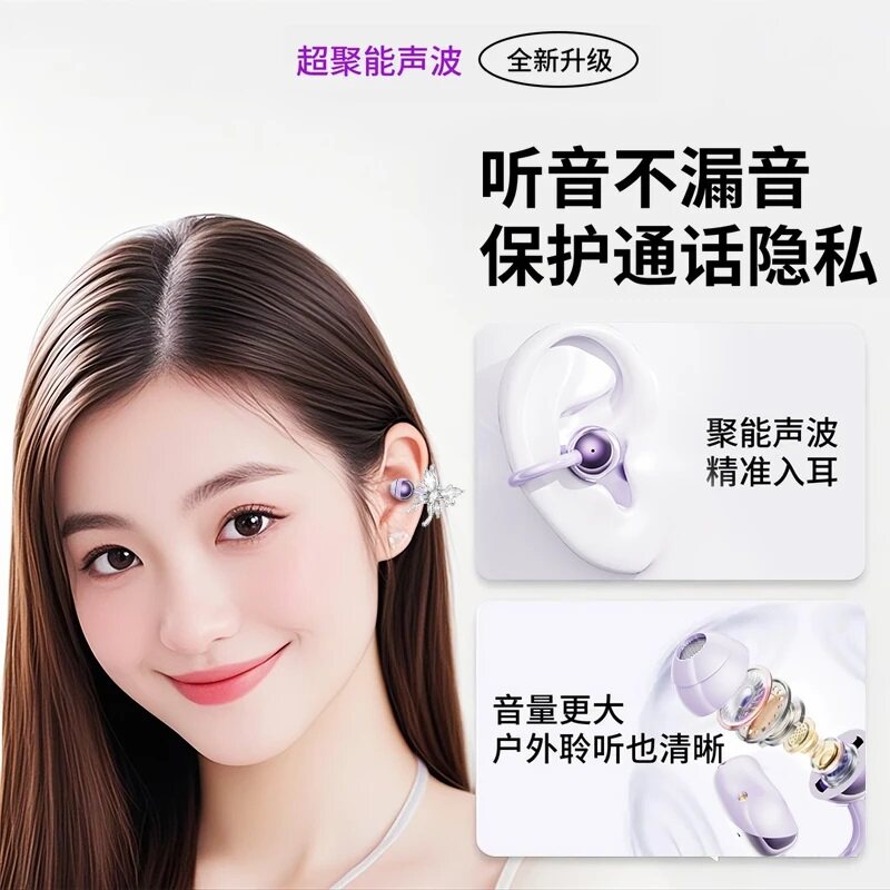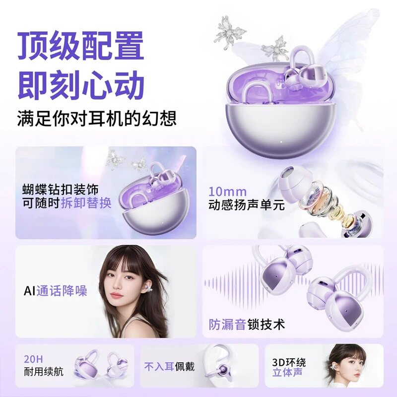【蝴蝶耳饰】蓝牙耳机无线耳夹式气骨传导2026新款开放不入耳运动