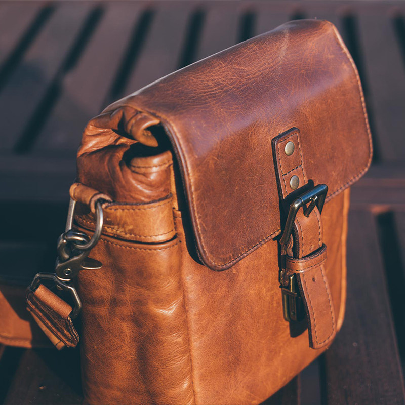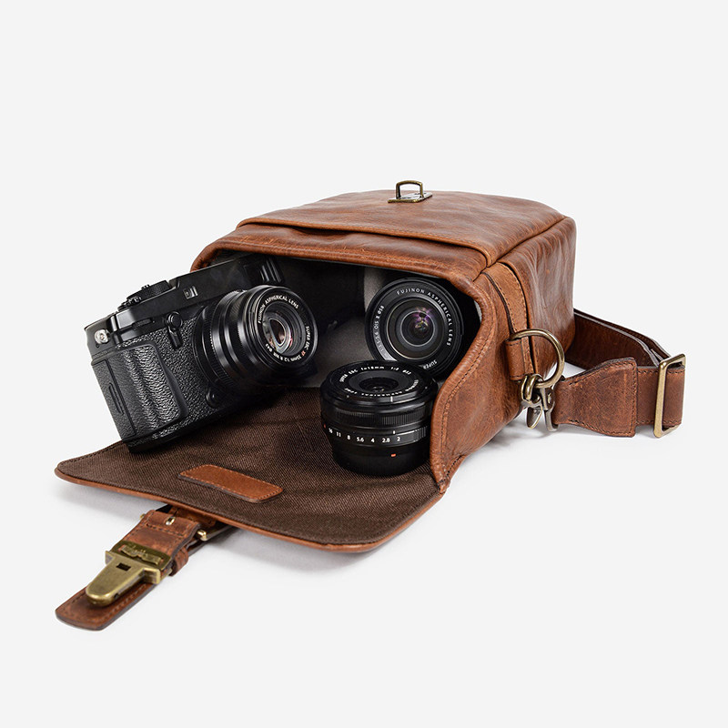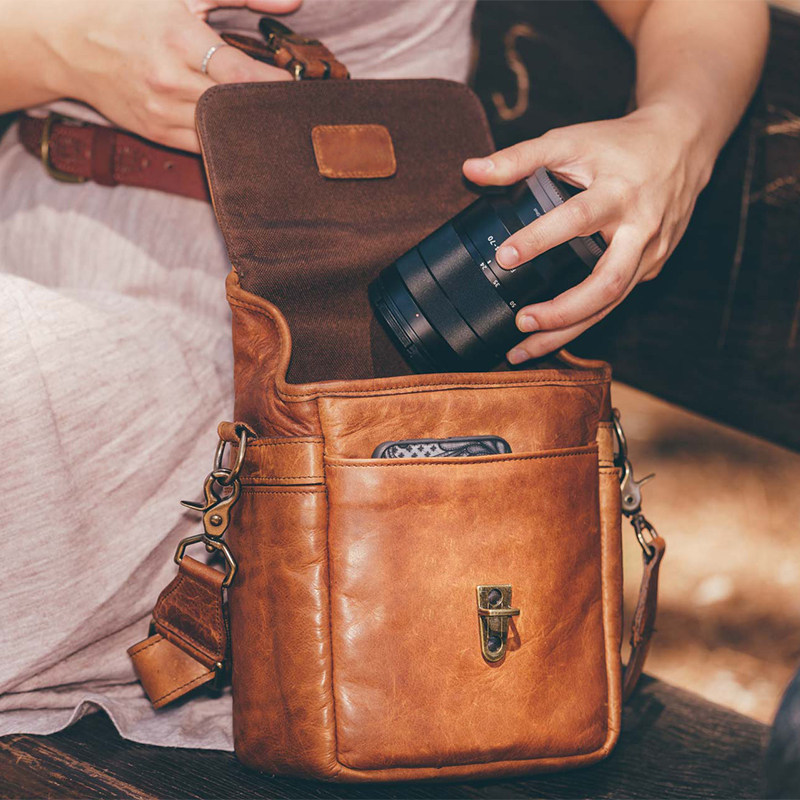 吉卡尼 阿美咔叽复古竖款真皮微单相机包单肩斜挎男士随身小包潮