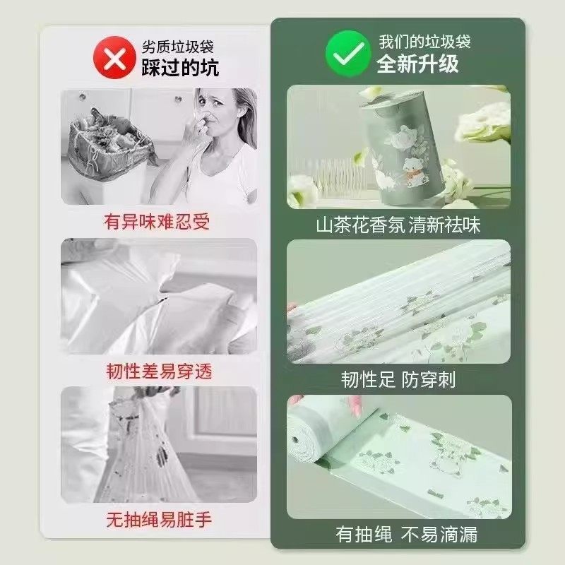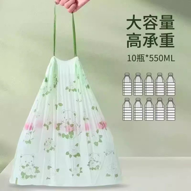 山茶花塑料袋拾便袋加大加厚浴缸袋手提式抽绳垃圾袋印花年货大卷